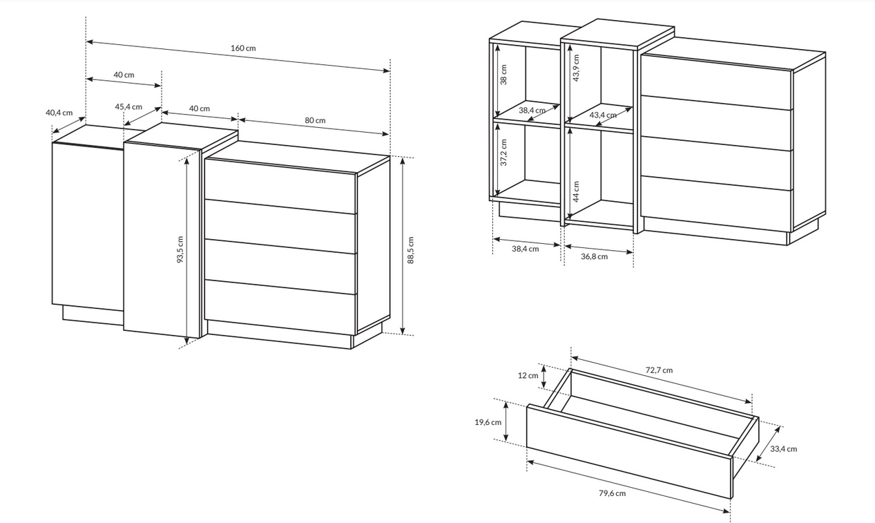 | Komodos tipas | Su stalčiais ir durelėmis |
