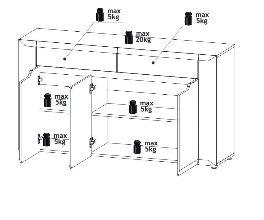 | Komodos tipas | Su stalčiais ir durelėmis |