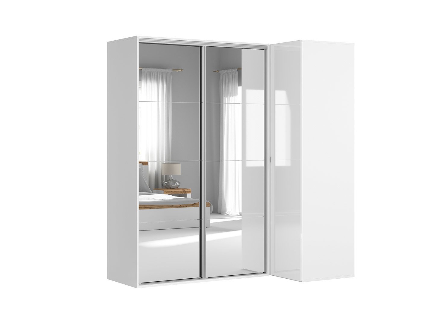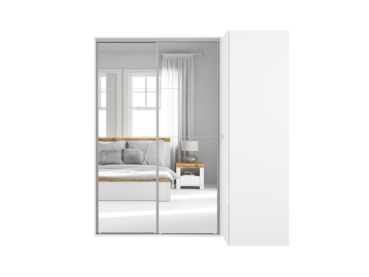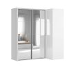 Kampinė spinta Flex 16 – tai erdvus ir šiuolaikiškas sprendimas miegamajam ar drabužinei. Ši spinta pagaminta iš kokybiškos LMDP plokštės, išsiskiria balta korpuso spalva, kuri derinama su blizgia balta apdaila. Stumdomos durys leidžia patogiai naudotis net ir mažesnėse erdvėse, o integruotas veidrodis vizualiai padidina kambarį ir suteikia daugiau šviesos.