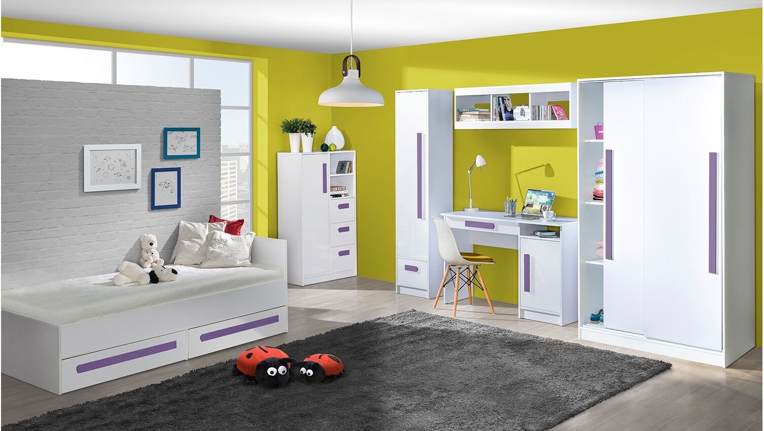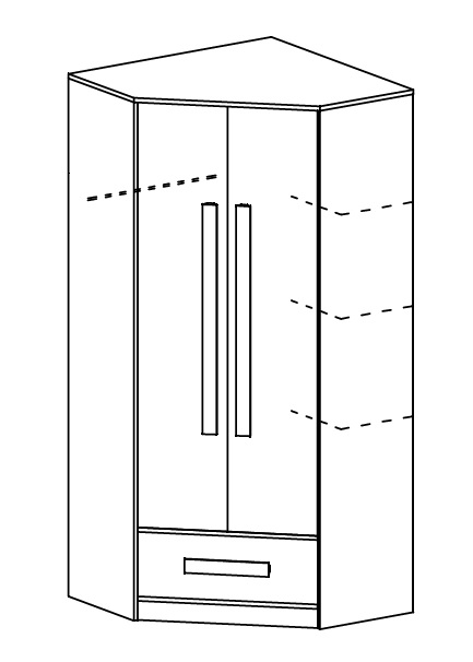 Kampinė spinta „Guliver 2“ – tai funkcionalus ir vizualiai išraiškingas baldas, puikiai išnaudojantis kampinę kambario erdvę. Spintos aukštis 1910 mm, plotis 870 mm, gylis 870 mm. Pagaminta iš patvarios LMDP plokštės. Viduje yra talpios lentynos įvairiems daiktams susidėti. Spinta turi varstomas duris ir papildomą stalčių apačioje. Galima pasirinkti fasado bei rankenėlių spalvas, todėl ją lengva priderinti prie vaiko kambario dizaino. Praktiška, kompaktiška ir žaisminga spinta padės palaikyti tvarką net mažoje erdvėje.