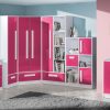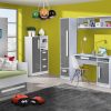 Moderni kampinė spinta „Guliver 2“ su pasirinktu fasado dizainu ir lentynomis – praktiškas sprendimas vaiko kambariui.