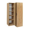 Ši moderni kampinė spinta Kos yra puikus pasirinkimas siekiantiems maksimalaus funkcionalumo neaukojant kambario erdvės.