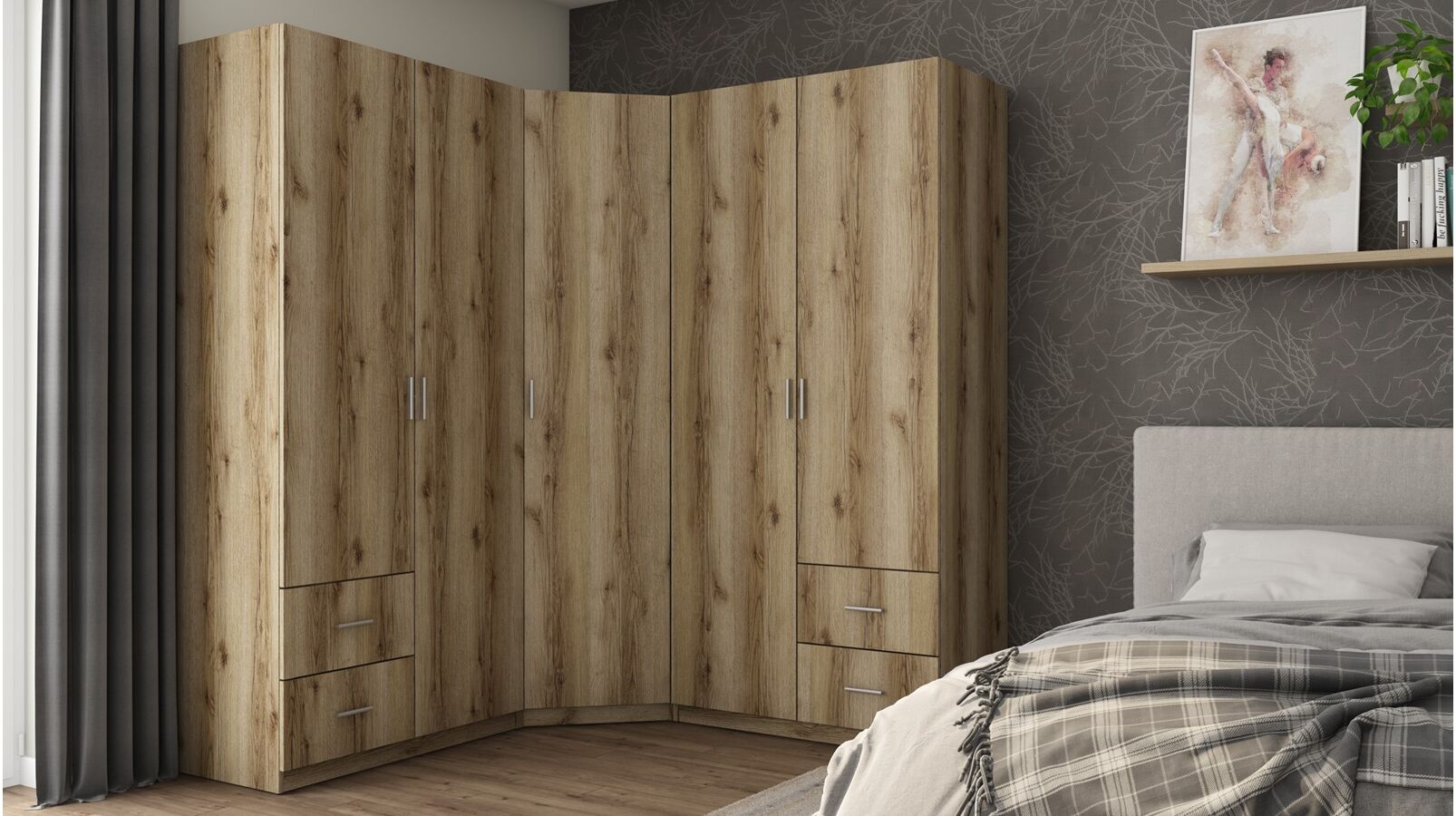 Kampinė trijų dalių spinta Meb 189/214 – tai funkcionalus ir estetiškas pasirinkimas tiems, kurie ieško praktiško sprendimo maksimaliai išnaudoti kambario erdvę. Šis modelis puikiai pritaikytas tiek erdviems, tiek mažesniems kambariams, leidžiantis optimaliai išnaudoti kambario kampą ir sutalpinti visus reikiamus daiktus vienoje vietoje.