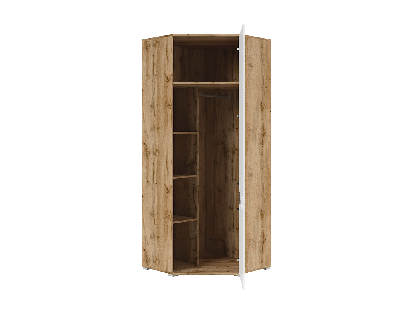 Kampinė spinta Zele SZFN1D – tai išskirtinis pasirinkimas tiems, kurie ieško funkcionalumo, modernaus dizaino ir vietą taupančio baldo. Dėl savo konstrukcijos ši spinta puikiai išnaudoja kampinę kambario erdvę, suteikdama daug vietos daiktams laikyti net ir mažesniuose kambariuose.
