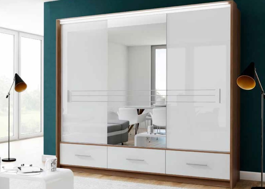 Amsterdam 250 L – tai erdvi, moderni ir stilinga stumdomų durų spinta, idealiai tinkanti tiek miegamojo, tiek prieškambario interjerui. Ši spinta gaminama iš aukštos kokybės LMDP plokštės, kurios paviršius padengtas blizgia balta arba juoda danga – tai suteikia baldams prabangos įspūdį ir lengvai derinasi prie įvairių interjerų.