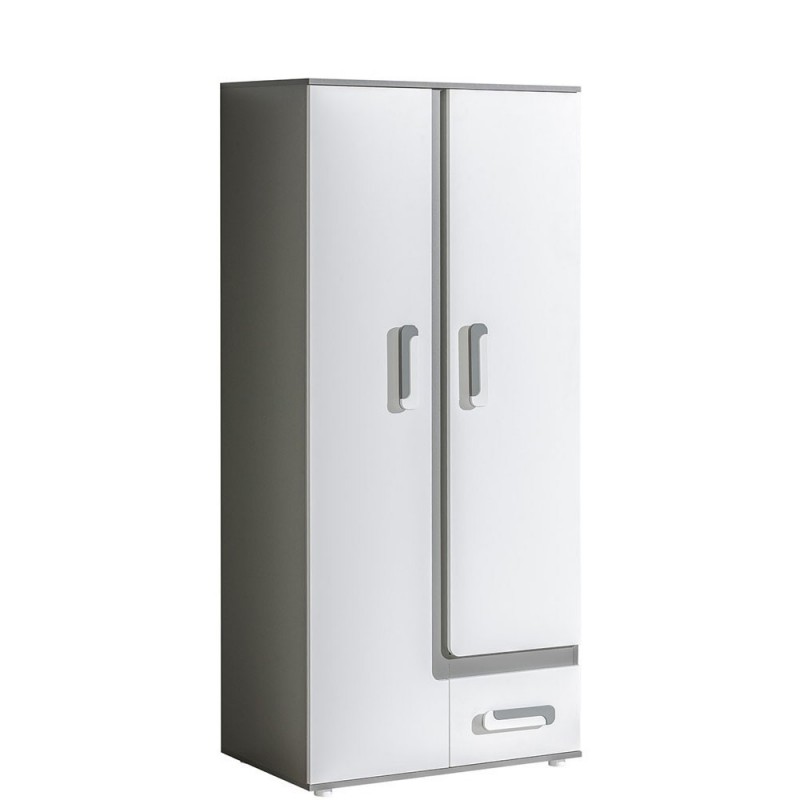 Spinta turi dvi varstomas duris su išskirtinio dizaino rankenomis, kurios ne tik estetiškai atrodo, bet ir yra patogios naudoti net mažesniems vaikams. Viduje integruota kabyklos juosta, todėl tai puikus pasirinkimas viršutiniams drabužiams, paltams ar uniformoms laikyti. Apatinėje spintos dalyje yra vienas stalčius, kuris suteikia papildomos vietos smulkiems daiktams, aksesuarams ar avalynei.