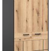 Moderni spinta Ate AT13 su varstomomis durimis, frezuotomis juodomis rankenėlėmis ir stalčiais. Galima komplektuoti su papildomomis lentynomis.