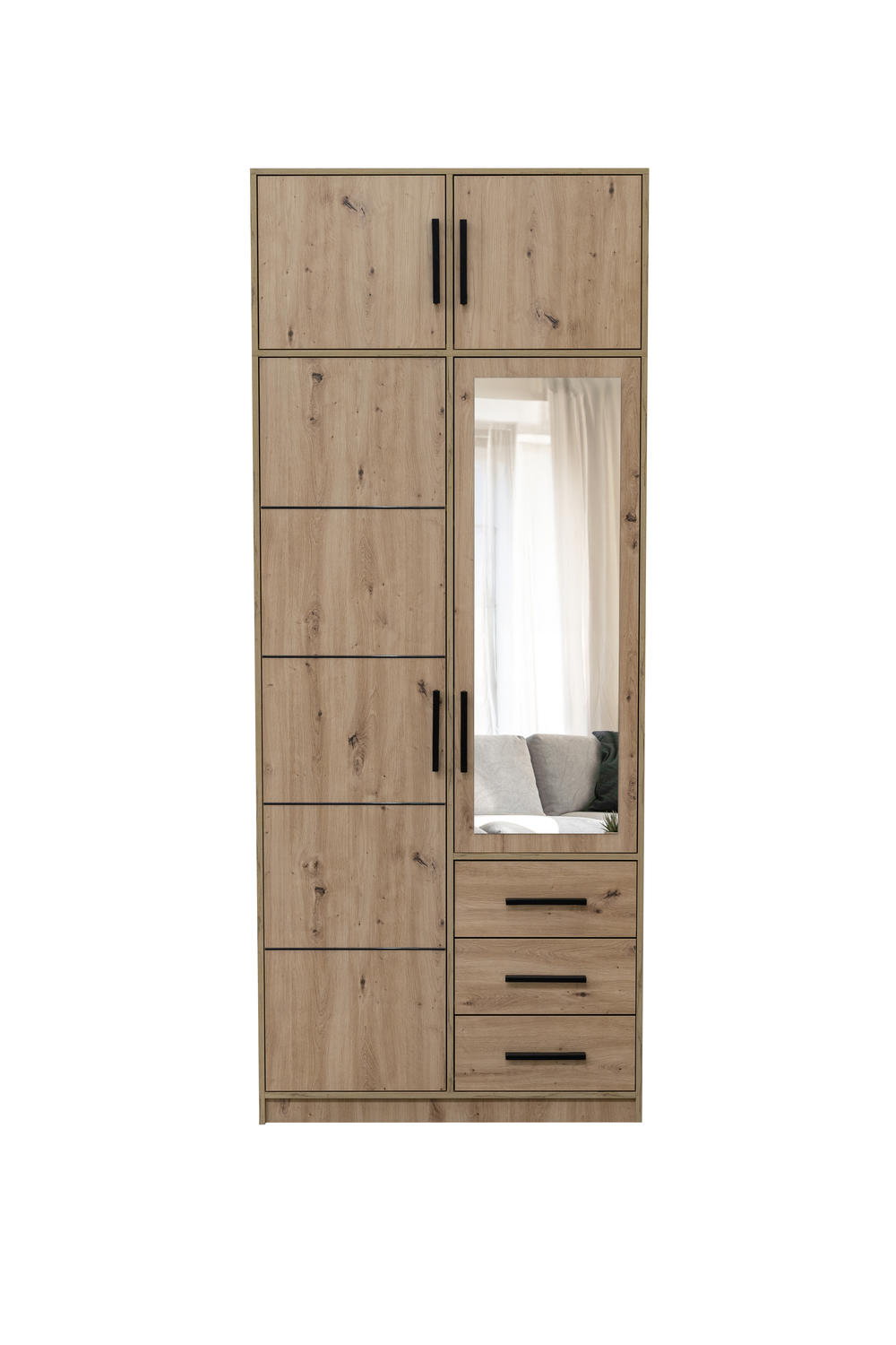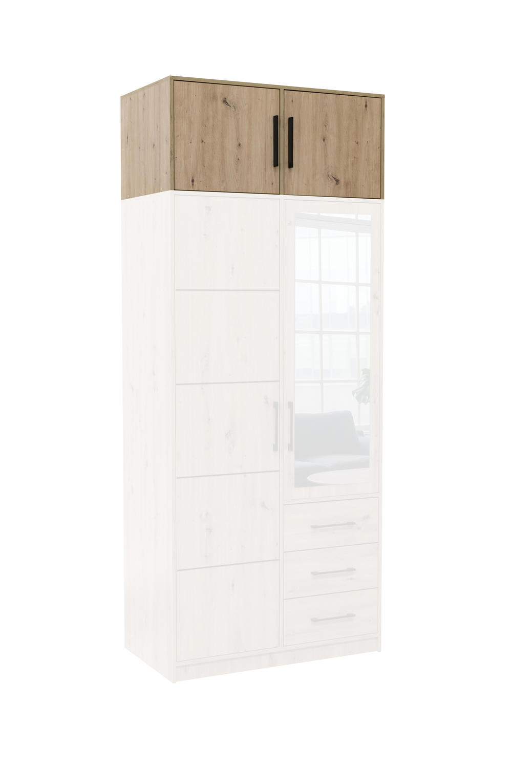- Ar antresolė yra komplekte? Taip, ši prekės konfigūracija apima tiek pagrindinę spintą su veidrodžiu, tiek papildomą antresolės dalį.