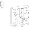 Spinta pagaminta iš aukščiausios kokybės 18 mm dvipusės laminuotos plokštės iš Pfleiderer.• Visi elementai padengti itin atspariu 0,8 mm storio PVC apvadu, taip pat ir apatinėje grindų pusėje. Dėl to spinta įgavo papildomą apsaugą nuo drėgmės plaunant grindis.• Galinės sienelės pagamintos iš HDF plokštės, laminuotos iš vienos pusės (baldo korpuso spalvos), 3 mm storio.• Metalinės drabužių kabyklos.• Problema dėl nelygių grindų? Spintos kojelės tvirtos, reguliuojamos sklendės (užmaskuotas nuimamu cokoliu). Dėl to galite lengvai reguliuoti drabužių spintos lygį.