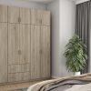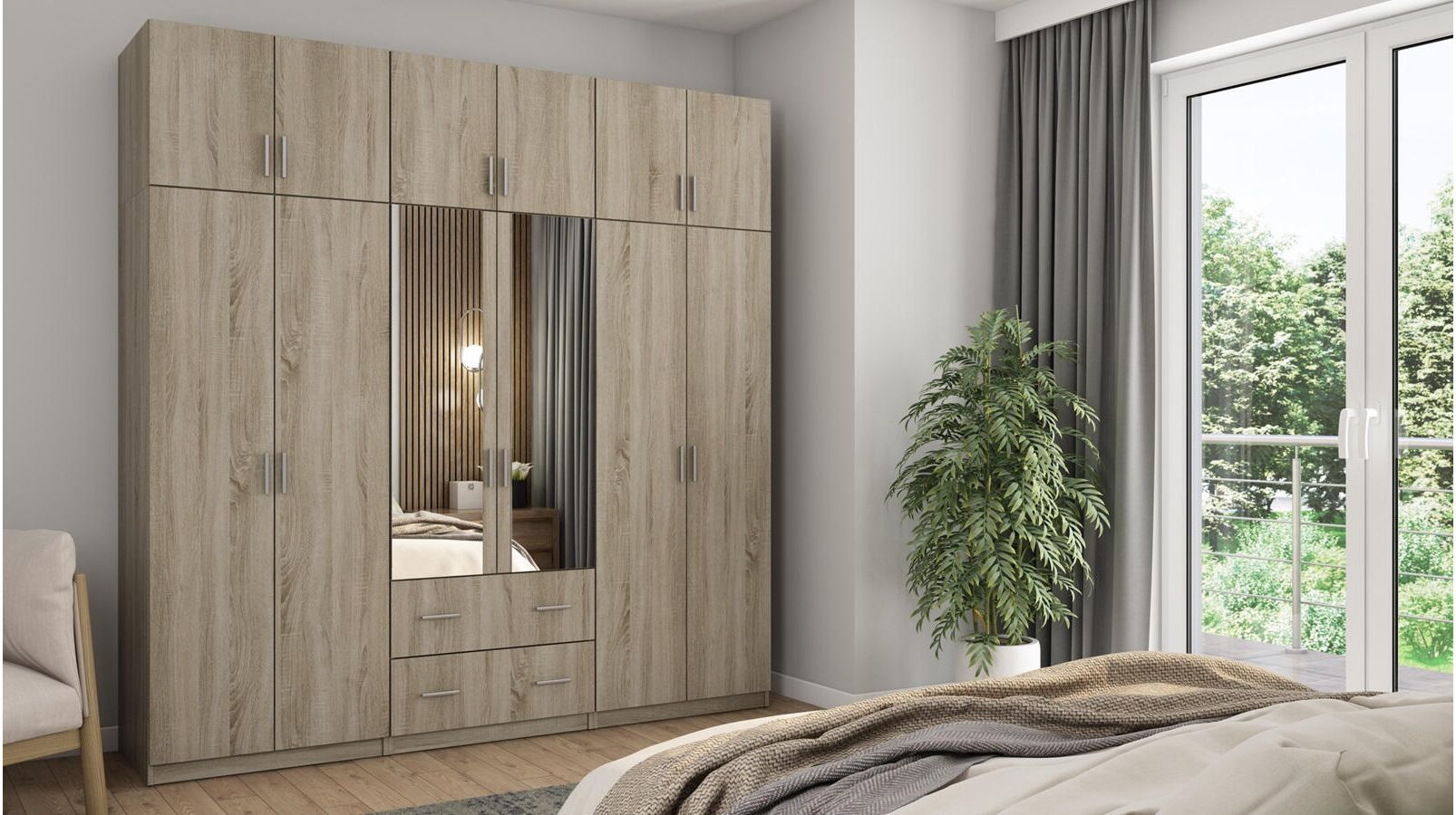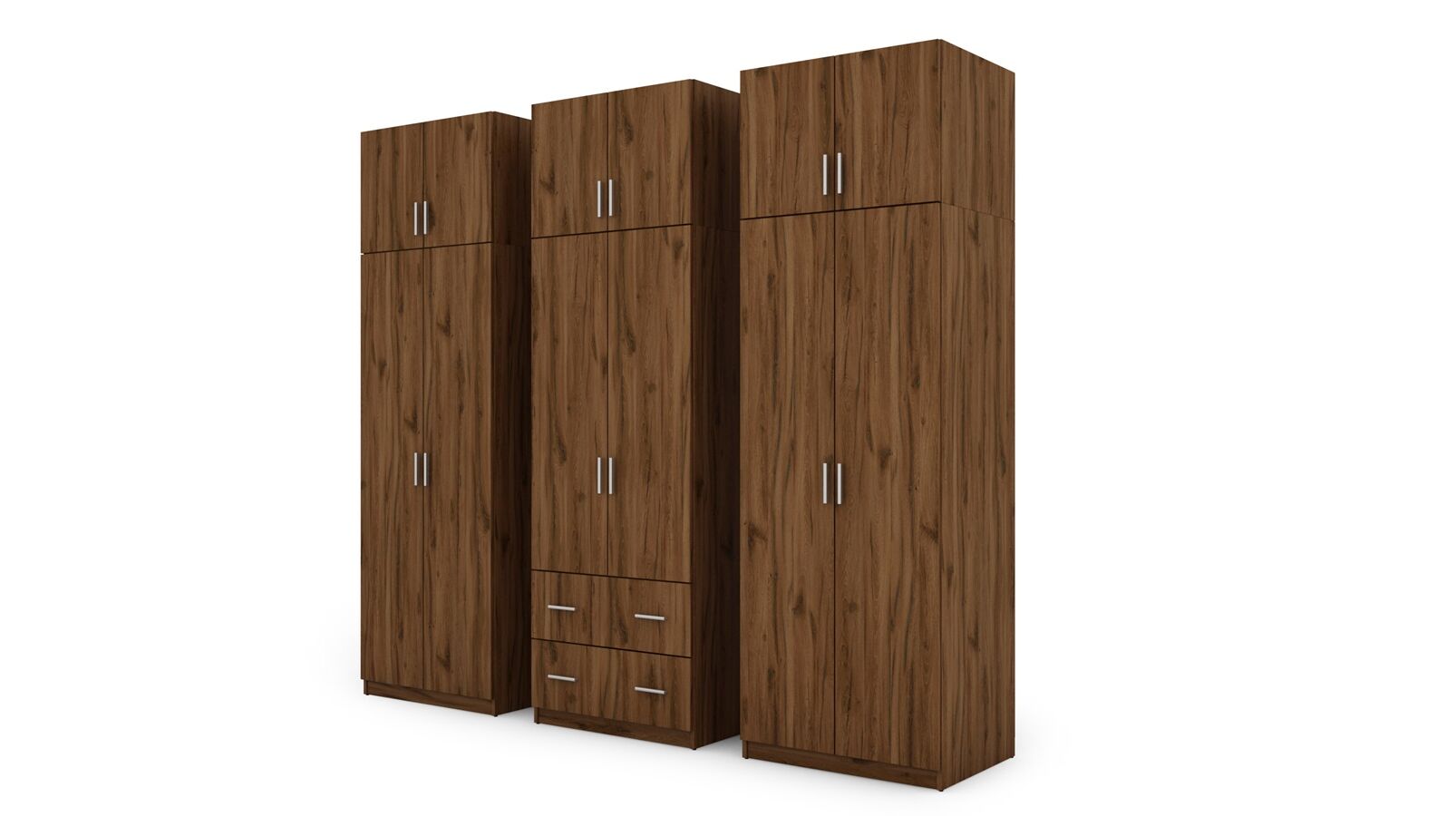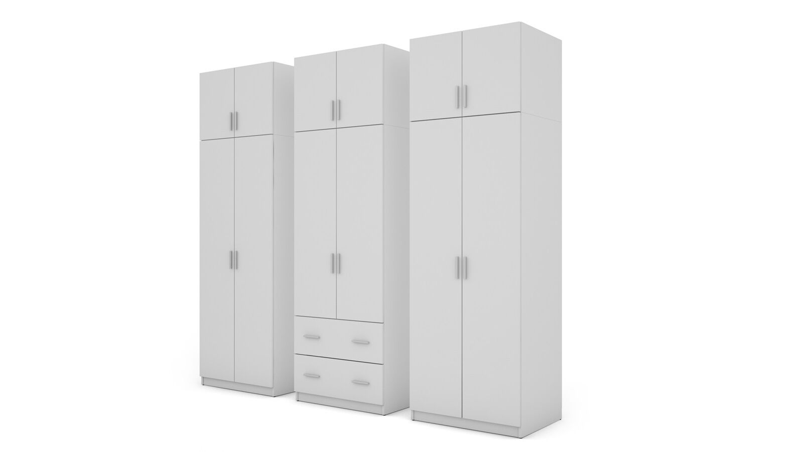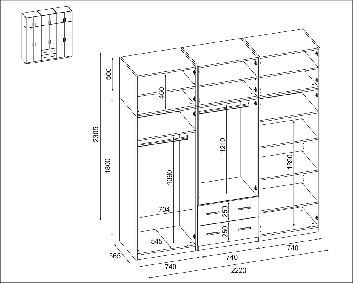 Spinta pagaminta iš aukščiausios kokybės 18 mm dvipusės laminuotos plokštės iš Pfleiderer.• Visi elementai padengti itin atspariu 0,8 mm storio PVC apvadu, taip pat ir apatinėje grindų pusėje. Dėl to spinta įgavo papildomą apsaugą nuo drėgmės plaunant grindis.• Galinės sienelės pagamintos iš HDF plokštės, laminuotos iš vienos pusės (baldo korpuso spalvos), 3 mm storio.• Metalinės drabužių kabyklos.• Problema dėl nelygių grindų? Spintos kojelės tvirtos, reguliuojamos sklendės (užmaskuotas nuimamu cokoliu). Dėl to galite lengvai reguliuoti drabužių spintos lygį.