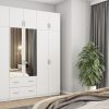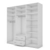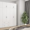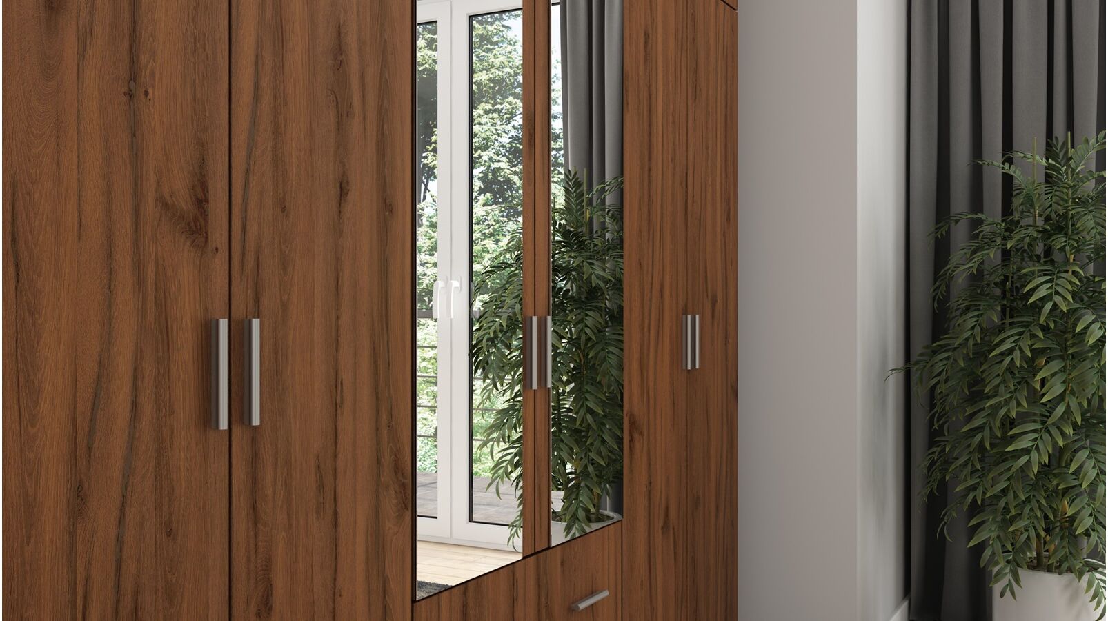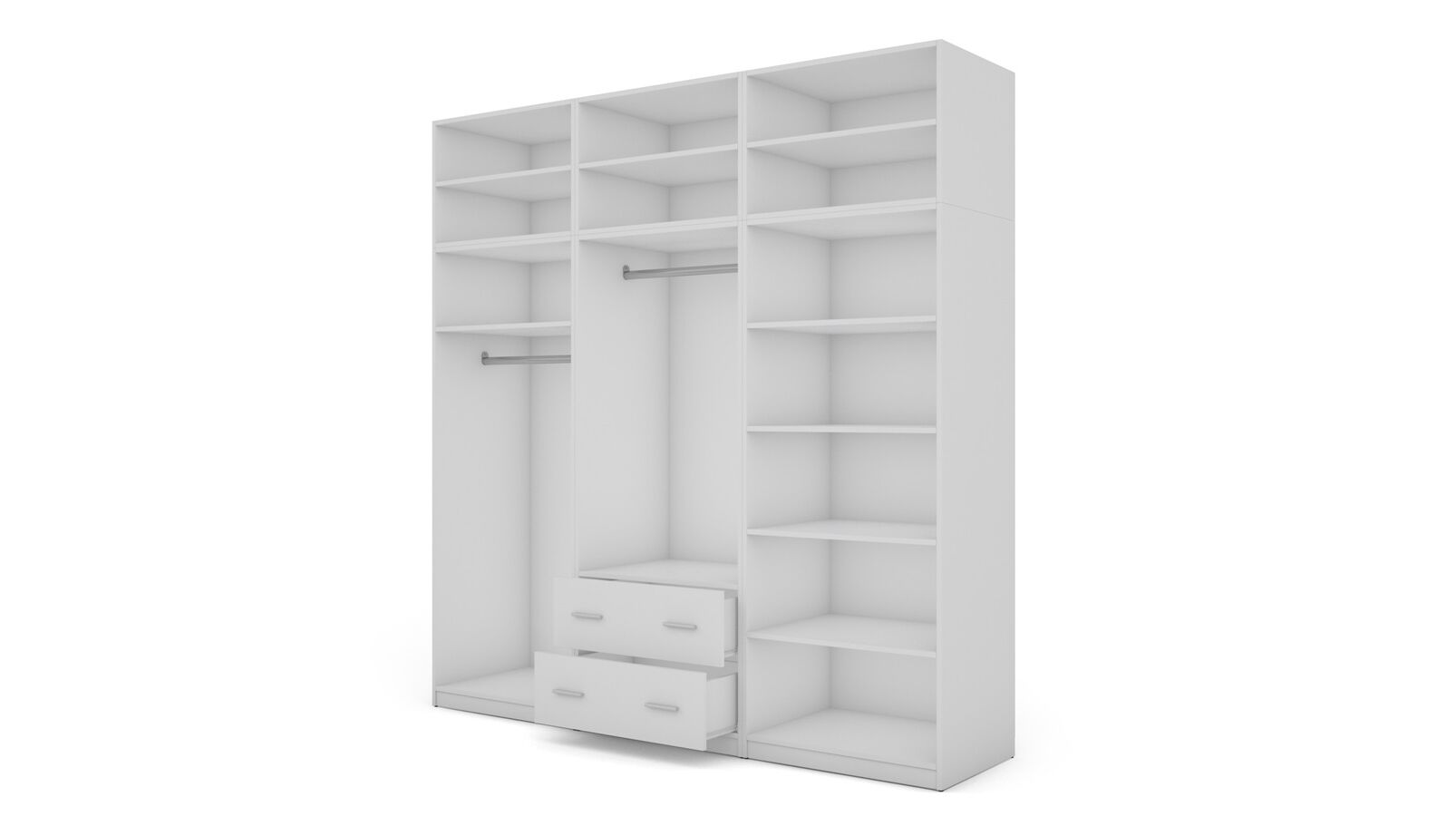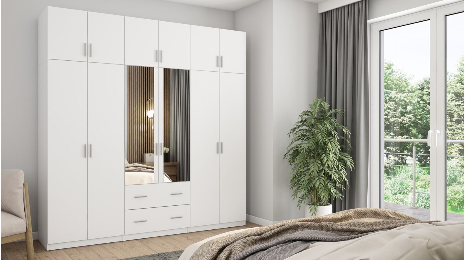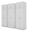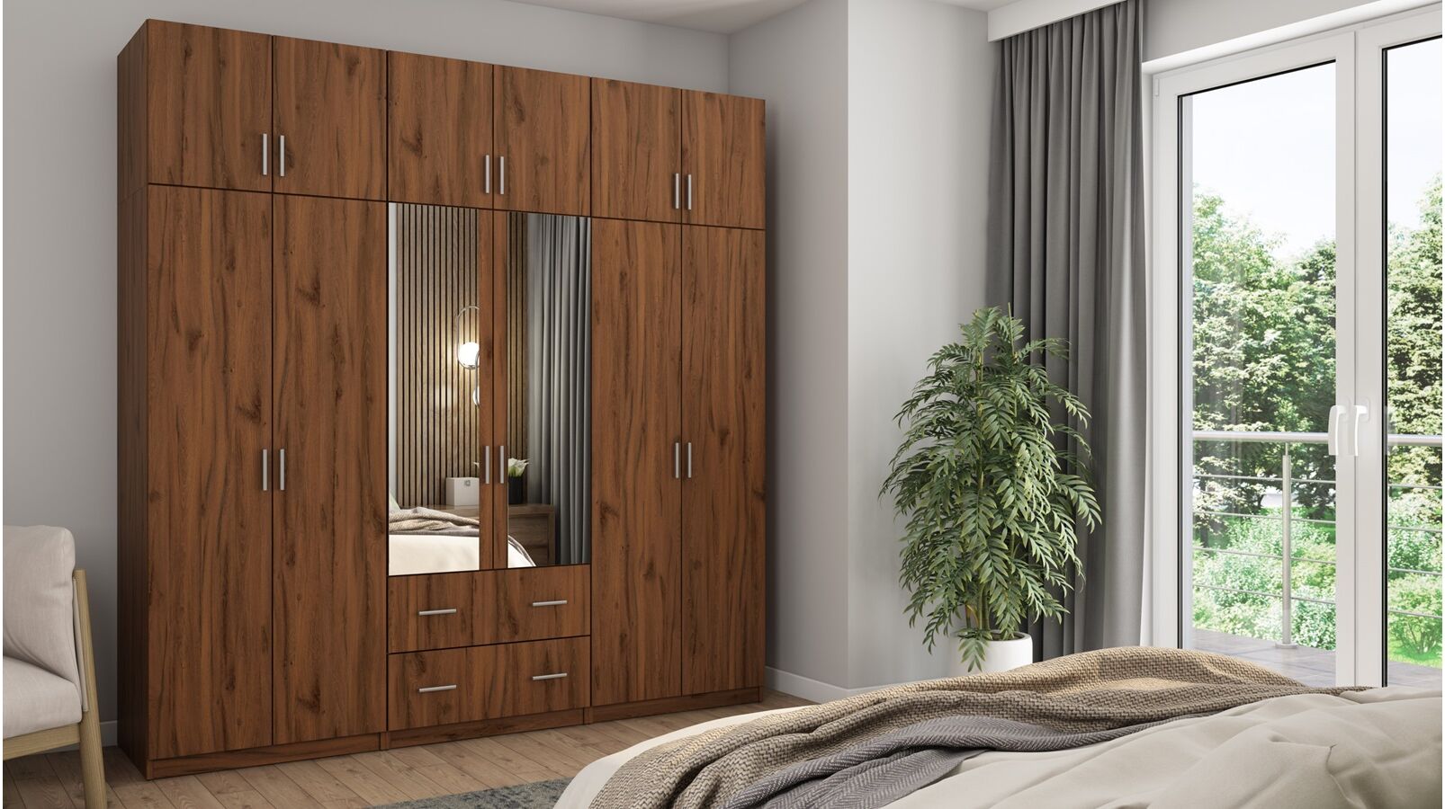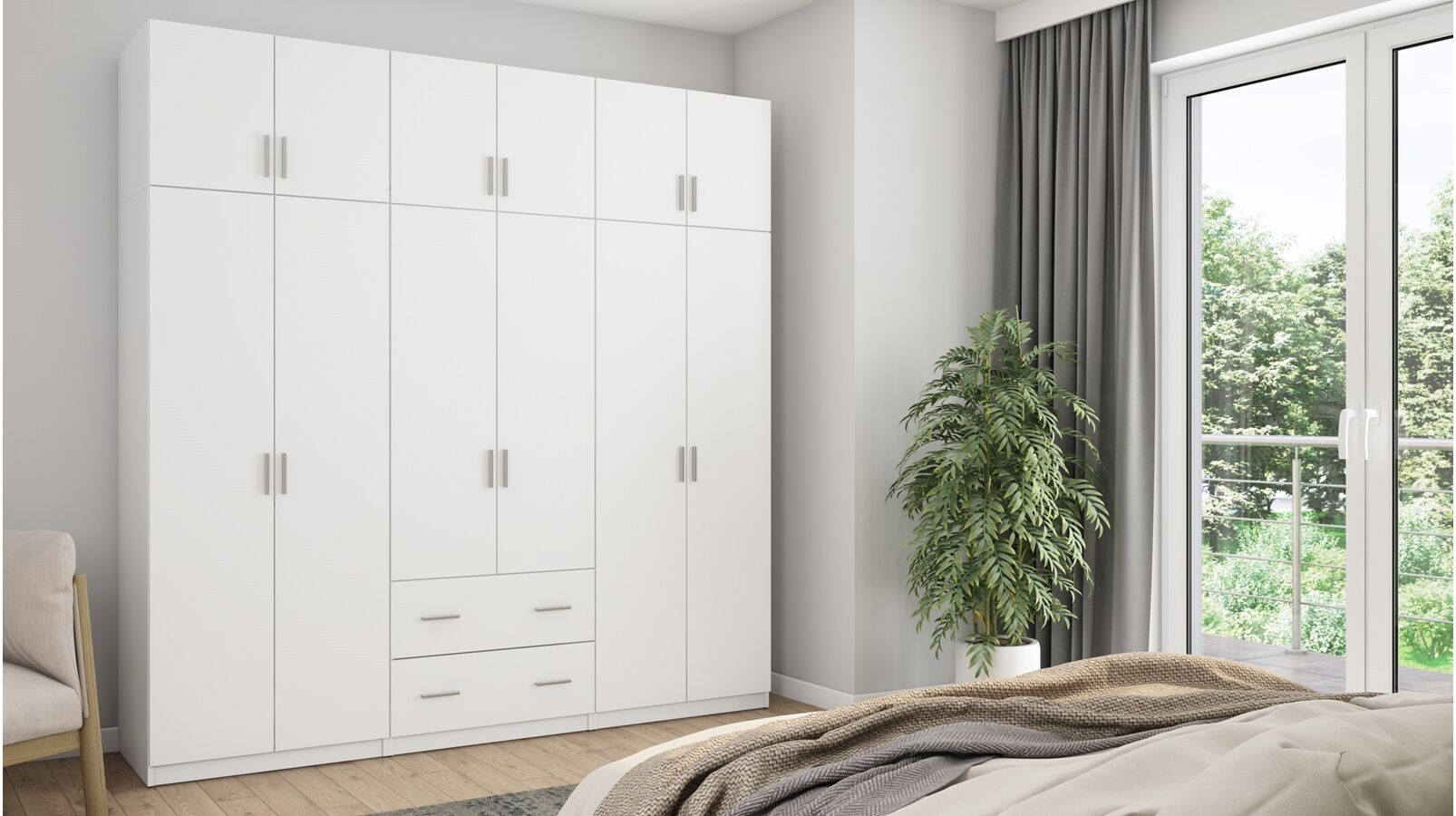 Spinta pagaminta iš aukščiausios kokybės 18 mm dvipusės laminuotos plokštės iš Pfleiderer.• Visi elementai padengti itin atspariu 0,8 mm storio PVC apvadu, taip pat ir apatinėje grindų pusėje. Dėl to spinta įgavo papildomą apsaugą nuo drėgmės plaunant grindis.• Galinės sienelės pagamintos iš HDF plokštės, laminuotos iš vienos pusės (baldo korpuso spalvos), 3 mm storio.• Metalinės drabužių kabyklos.• Problema dėl nelygių grindų? Spintos kojelės tvirtos, reguliuojamos sklendės (užmaskuotas nuimamu cokoliu). Dėl to galite lengvai reguliuoti drabužių spintos lygį.