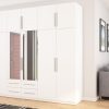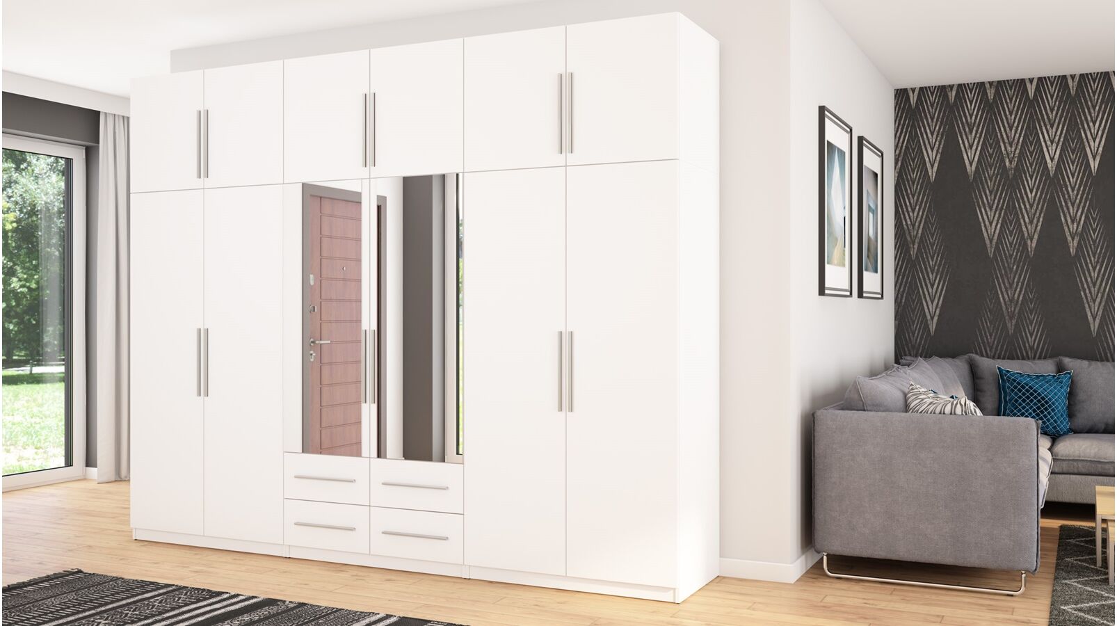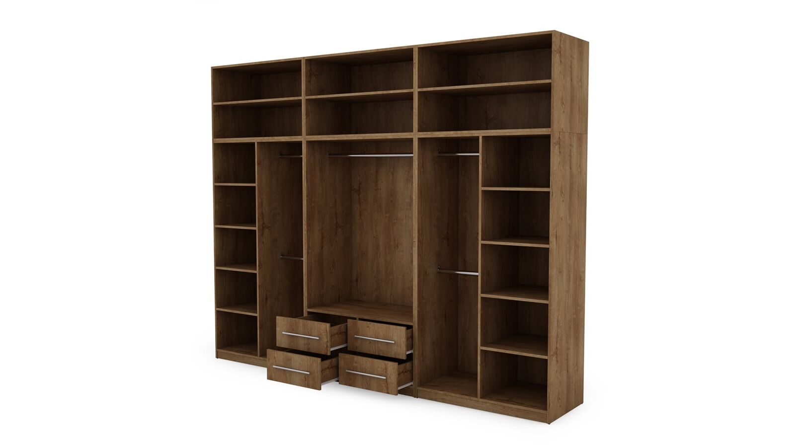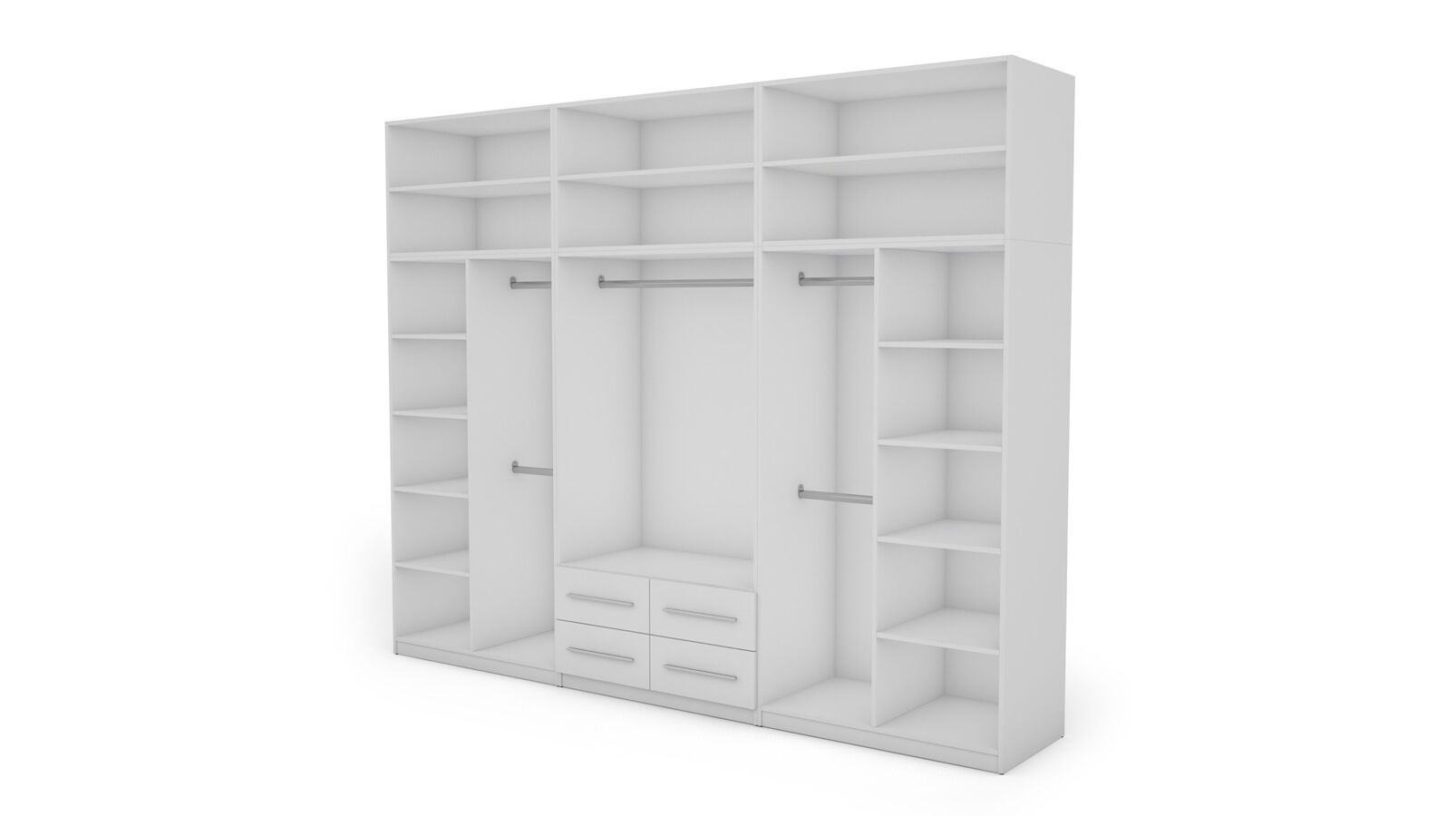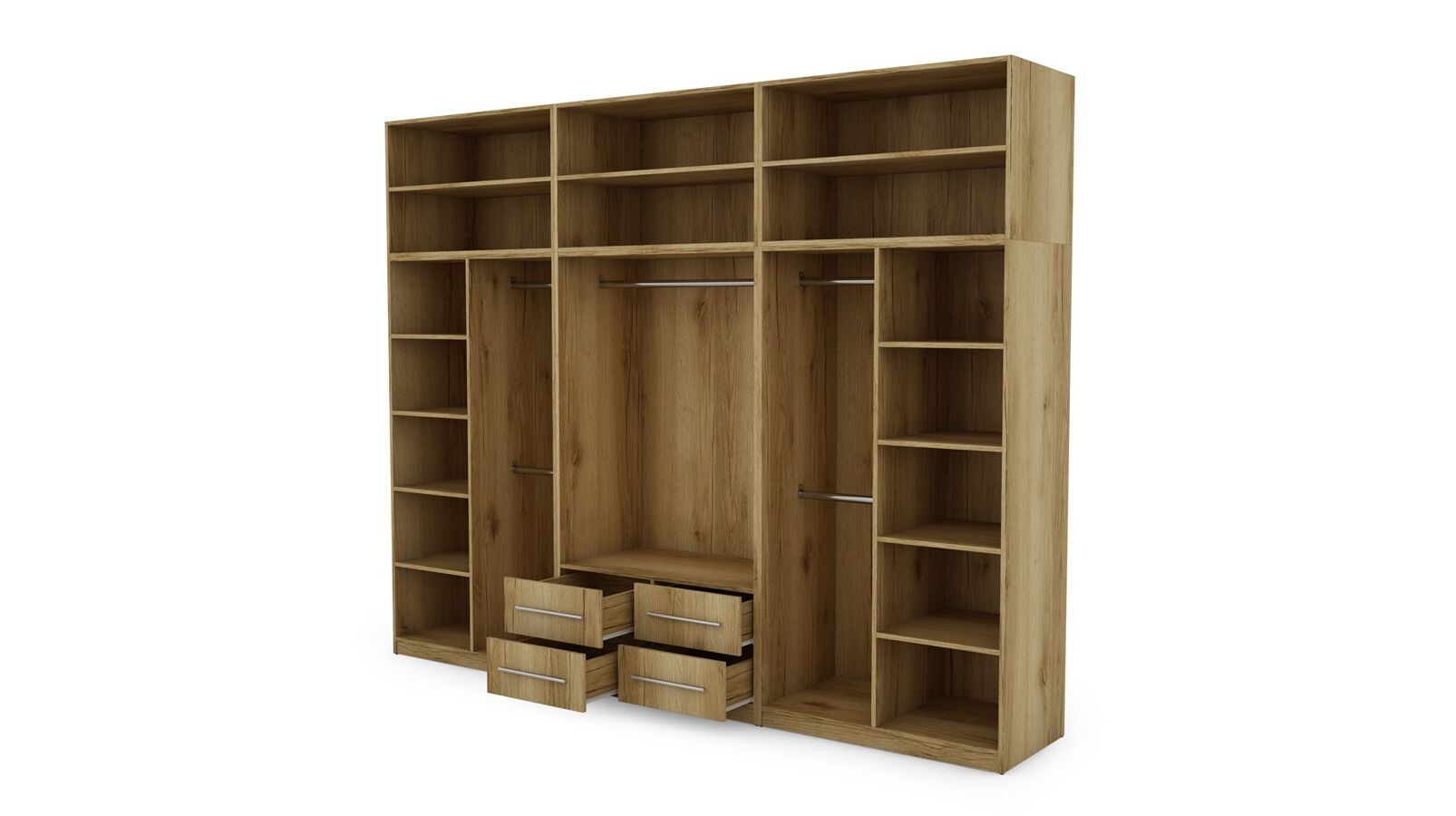 Spinta pagaminta iš aukščiausios kokybės 18 mm dvipusės laminuotos plokštės iš Pfleiderer.• Visi elementai padengti itin atspariu 0,8 mm storio PVC apvadu, taip pat ir apatinėje grindų pusėje. Dėl to spinta įgavo papildomą apsaugą nuo drėgmės plaunant grindis.• Galinės sienelės pagamintos iš HDF plokštės, laminuotos iš vienos pusės (baldo korpuso spalvos), 3 mm storio.• Metalinės drabužių kabyklos.• Problema dėl nelygių grindų? Spintos kojelės tvirtos, reguliuojamos sklendės (užmaskuotas nuimamu cokoliu). Dėl to galite lengvai reguliuoti drabužių spintos lygį.