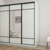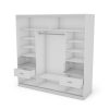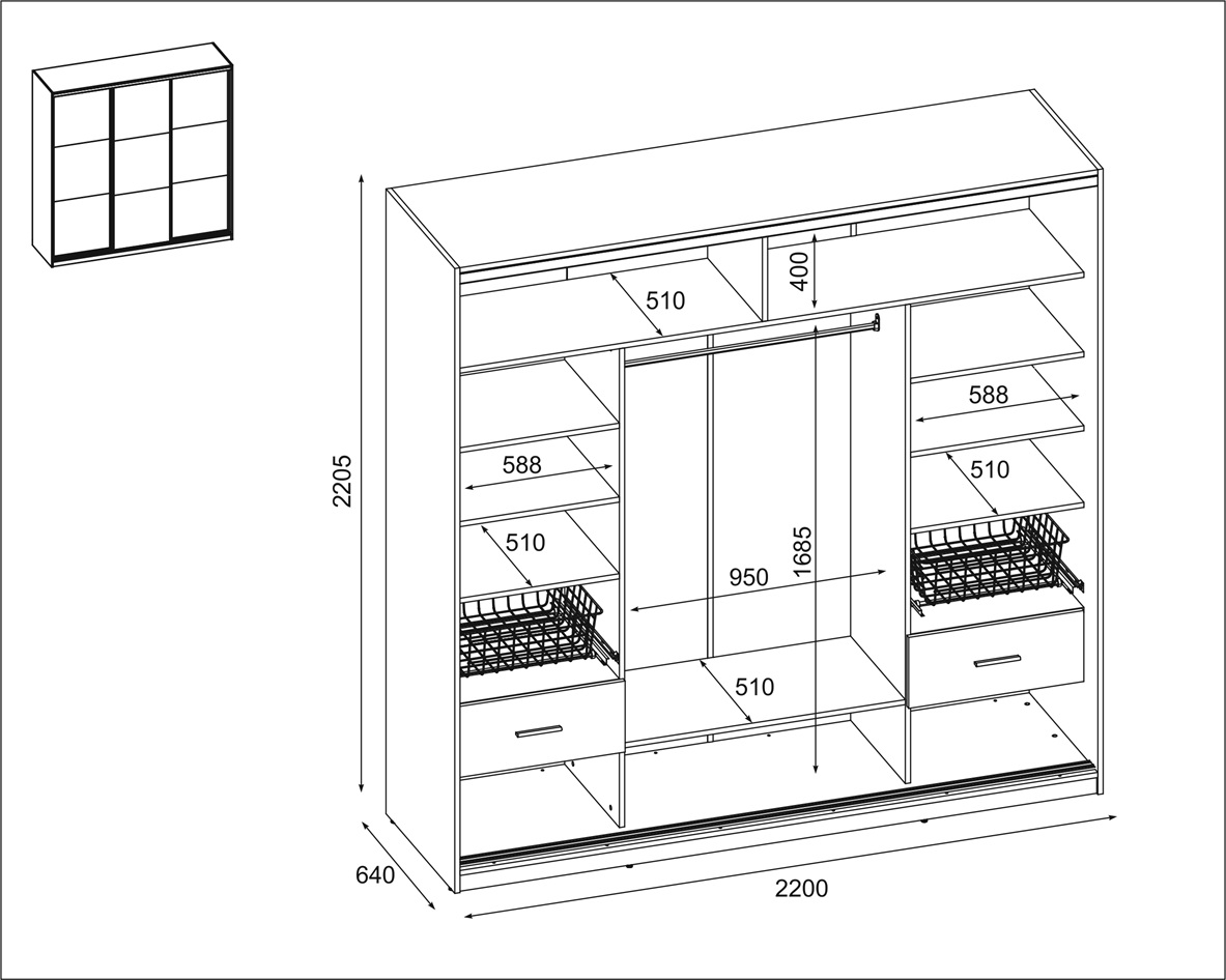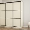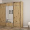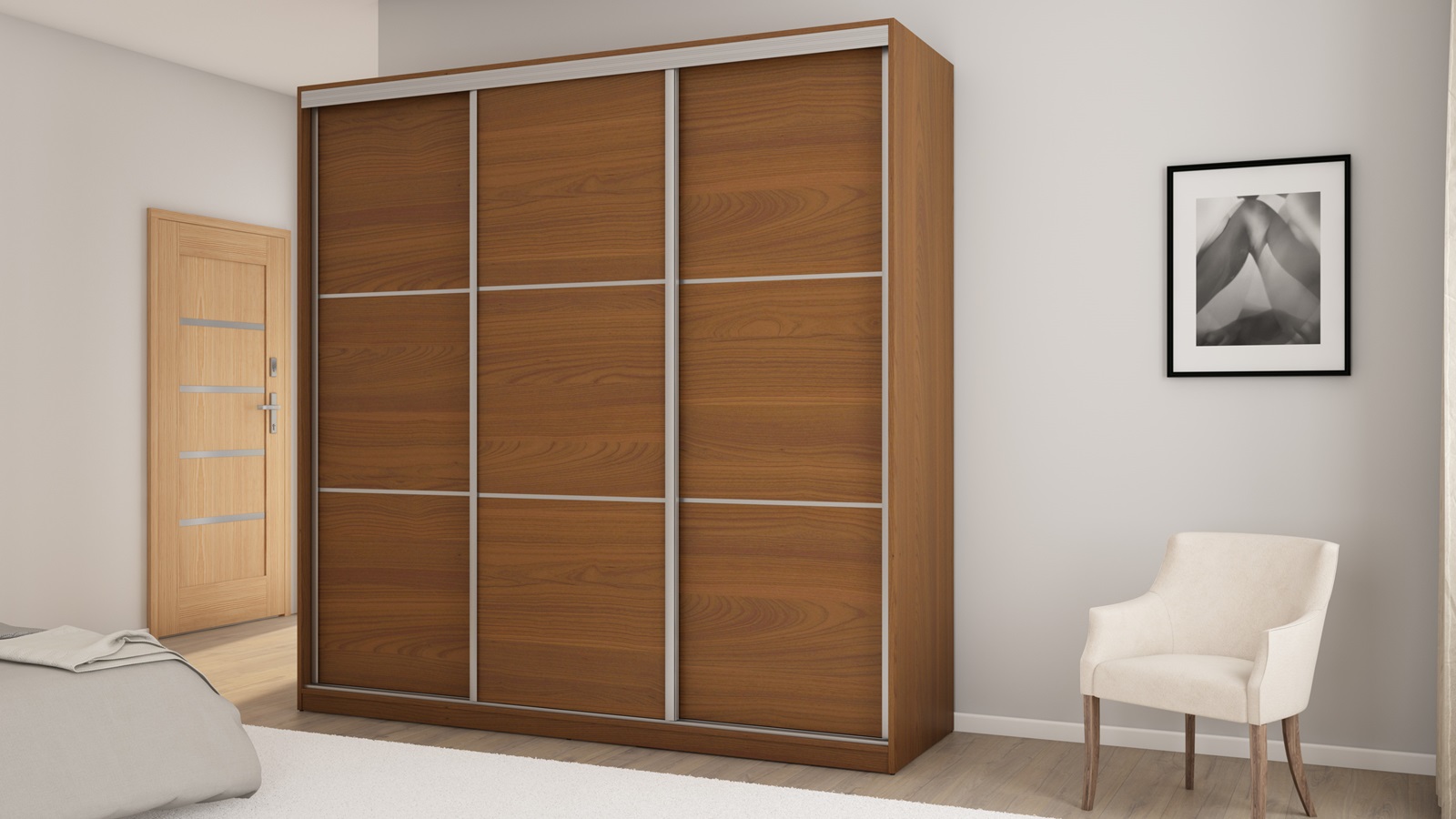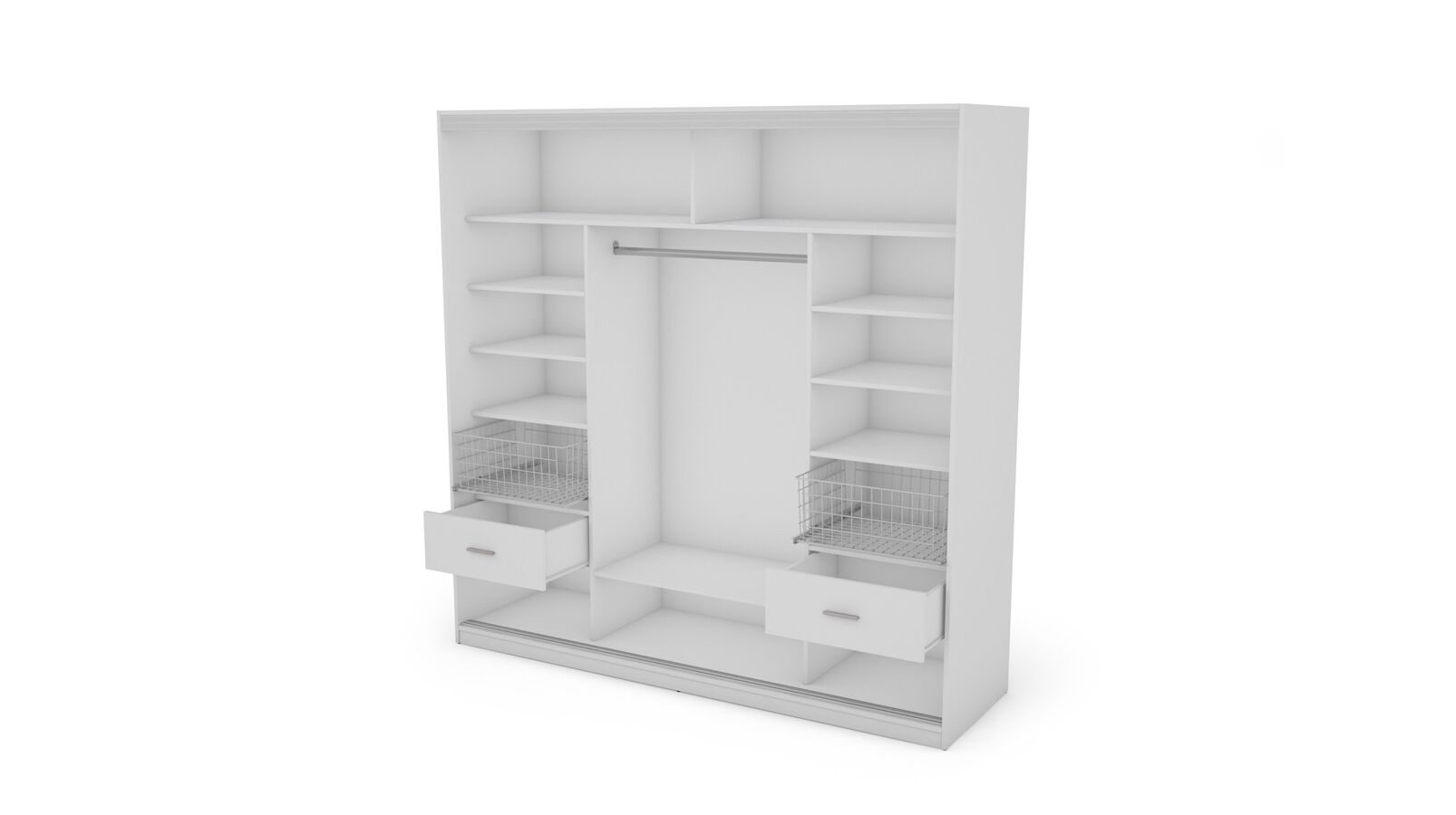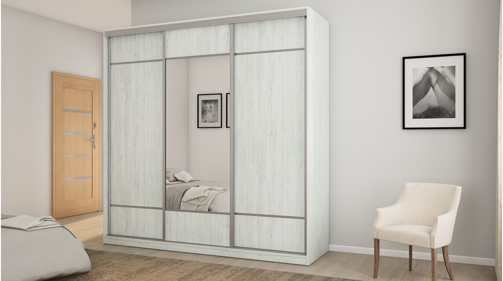 Spinta pagaminta iš aukščiausios kokybės 18 mm dvipusės laminuotos plokštės iš Pfleiderer.• Visi elementai padengti itin atspariu 0,8 mm storio PVC apvadu, taip pat ir apatinėje grindų pusėje. Dėl to spinta įgavo papildomą apsaugą nuo drėgmės plaunant grindis.• Galinės sienelės pagamintos iš HDF plokštės, laminuotos iš vienos pusės (baldo korpuso spalvos), 3 mm storio.• Metalinės drabužių kabyklos.• Problema dėl nelygių grindų? Spintos kojelės tvirtos, reguliuojamos sklendės (užmaskuotas nuimamu cokoliu). Dėl to galite lengvai reguliuoti drabužių spintos lygį.
