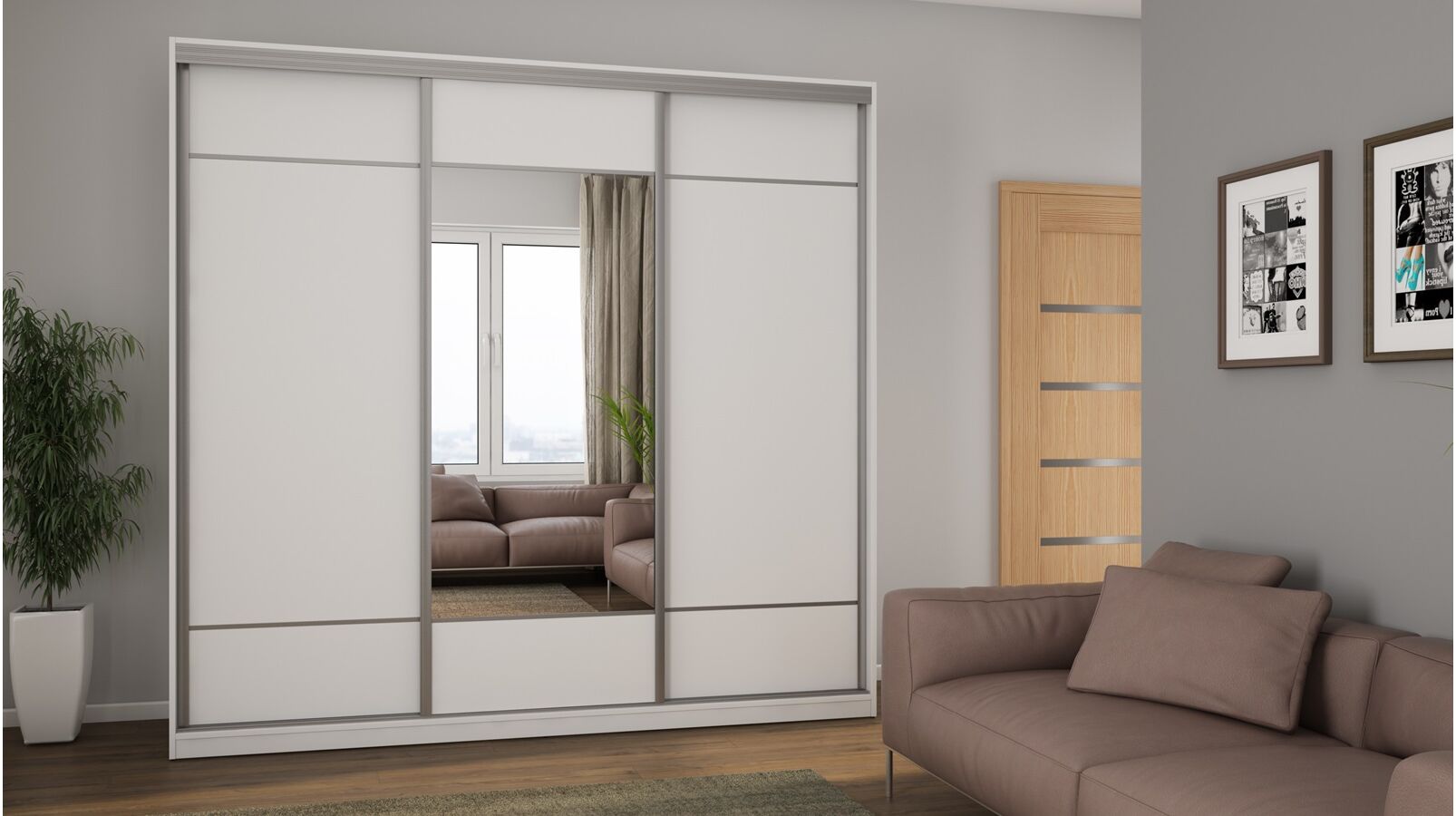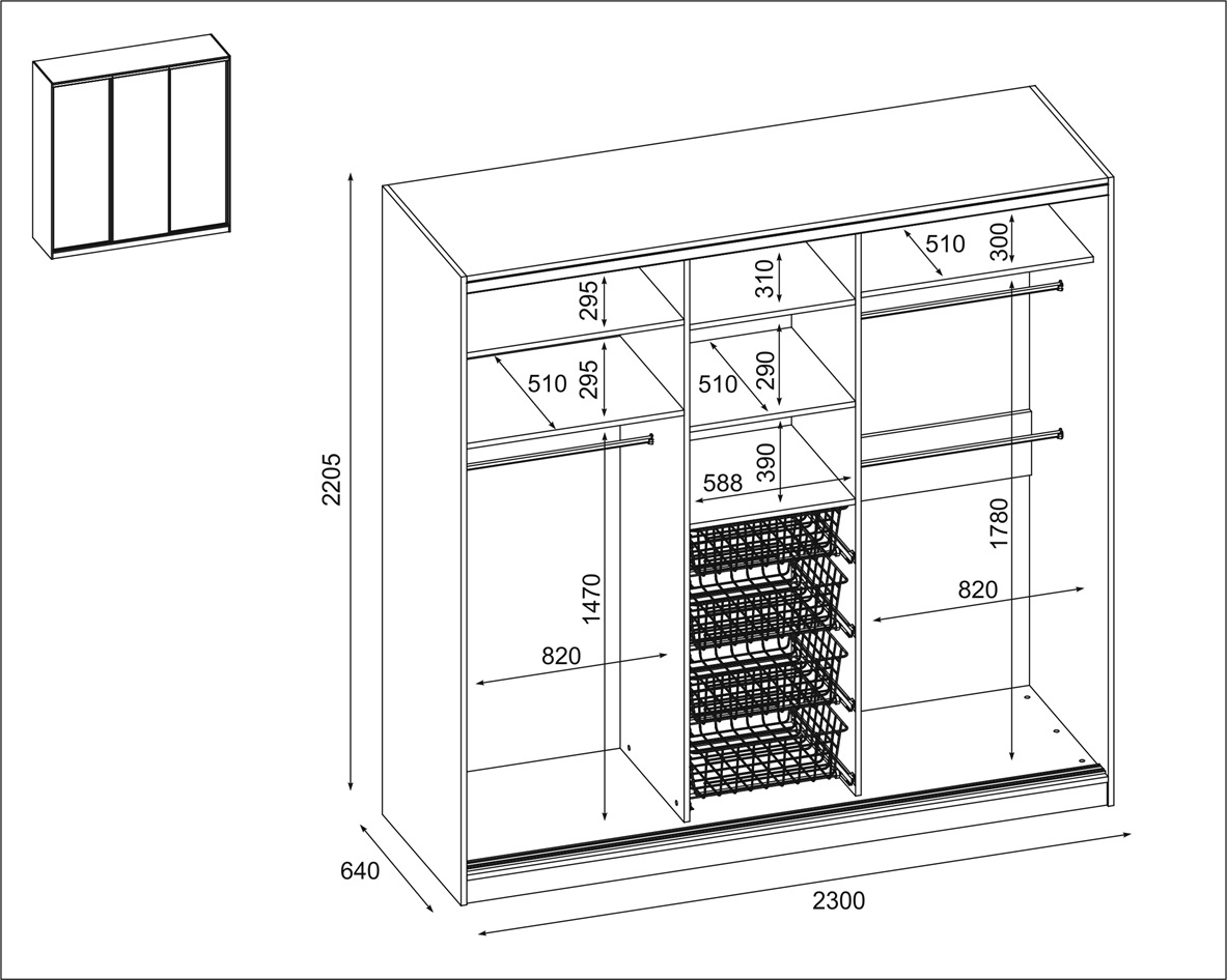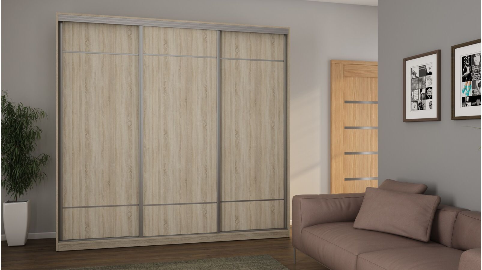 Spinta pagaminta iš aukščiausios kokybės 18 mm dvipusės laminuotos plokštės iš Pfleiderer.• Visi elementai padengti itin atspariu 0,8 mm storio PVC apvadu, taip pat ir apatinėje grindų pusėje. Dėl to spinta įgavo papildomą apsaugą nuo drėgmės plaunant grindis.• Galinės sienelės pagamintos iš HDF plokštės, laminuotos iš vienos pusės (baldo korpuso spalvos), 3 mm storio.• Metalinės drabužių kabyklos.• Problema dėl nelygių grindų? Spintos kojelės tvirtos, reguliuojamos sklendės (užmaskuotas nuimamu cokoliu). Dėl to galite lengvai reguliuoti drabužių spintos lygį.