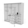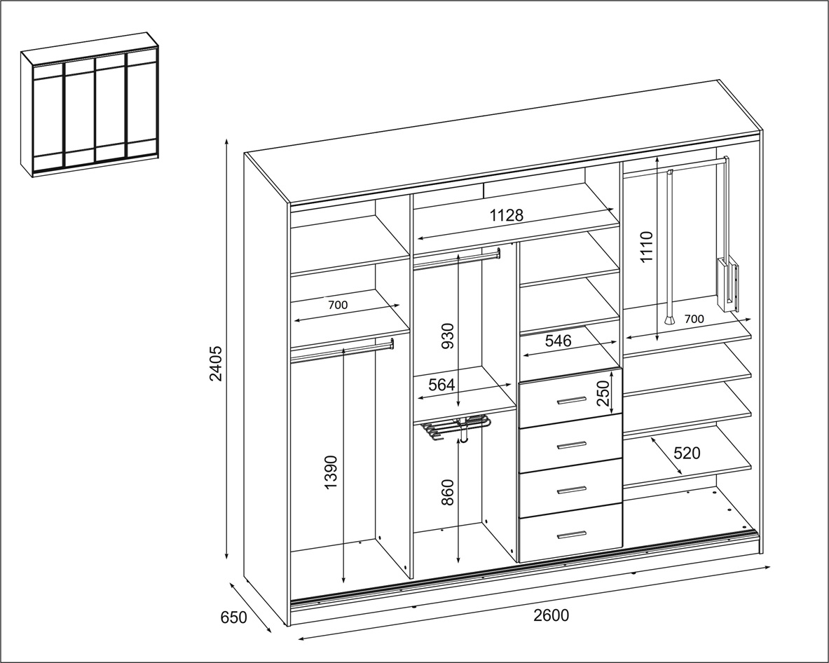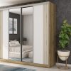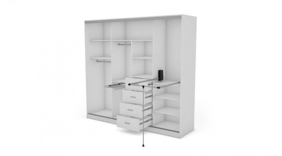 Spinta pagaminta iš aukščiausios kokybės 18 mm dvipusės laminuotos plokštės iš Pfleiderer.• Visi elementai padengti itin atspariu 0,8 mm storio PVC apvadu, taip pat ir apatinėje grindų pusėje. Dėl to spinta įgavo papildomą apsaugą nuo drėgmės plaunant grindis.• Galinės sienelės pagamintos iš HDF plokštės, laminuotos iš vienos pusės (baldo korpuso spalvos), 3 mm storio.• Metalinės drabužių kabyklos.• Problema dėl nelygių grindų? Spintos kojelės tvirtos, reguliuojamos sklendės (užmaskuotas nuimamu cokoliu). Dėl to galite lengvai reguliuoti drabužių spintos lygį.