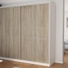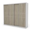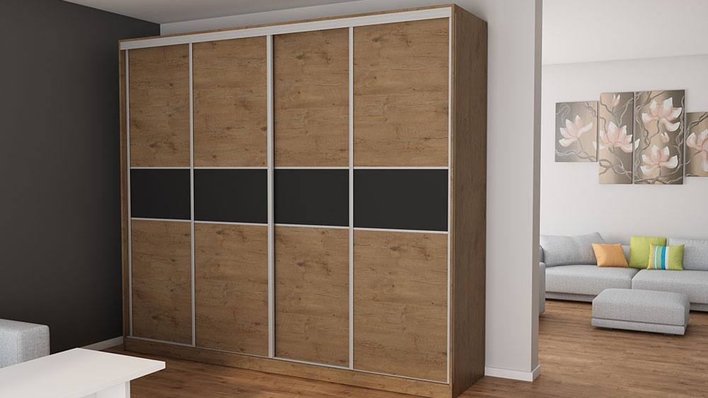 Spinta pagaminta iš aukščiausios kokybės 18 mm dvipusės laminuotos plokštės iš Pfleiderer.• Visi elementai padengti itin atspariu 0,8 mm storio PVC apvadu, taip pat ir apatinėje grindų pusėje. Dėl to spinta įgavo papildomą apsaugą nuo drėgmės plaunant grindis.• Galinės sienelės pagamintos iš HDF plokštės, laminuotos iš vienos pusės (baldo korpuso spalvos), 3 mm storio.• Metalinės drabužių kabyklos.• Problema dėl nelygių grindų? Spintos kojelės tvirtos, reguliuojamos sklendės (užmaskuotas nuimamu cokoliu). Dėl to galite lengvai reguliuoti drabužių spintos lygį.