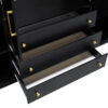 Estetinis vientisumas ir pritaikymas Galimybė rinktis juodą arba baltą spalvą leidžia šią spintą pritaikyti tiek griežtame moderniame, tiek klasikiniame interjere. Subtilios fasado linijos ir proporcijos padeda išvengti erdvės apkrovimo pojūčio, išlaikant kambario estetinį vientisumą. Tai ilgaamžis pasirinkimas ieškantiems talpaus ir vizualiai stabilaus baldo miegamojo ar drabužinės zonai.