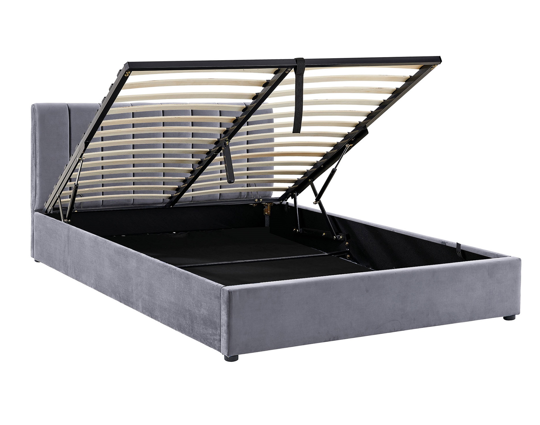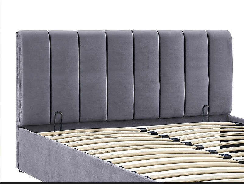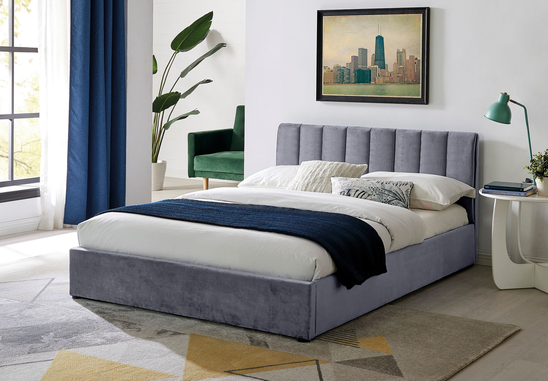 Lova Montreal, 140×200 cm, pilkos spalvos gobelenas, patikimas grotelių pagrindas ir komfortiškas dizainas užtikrina ramų ir kokybišką miegą.