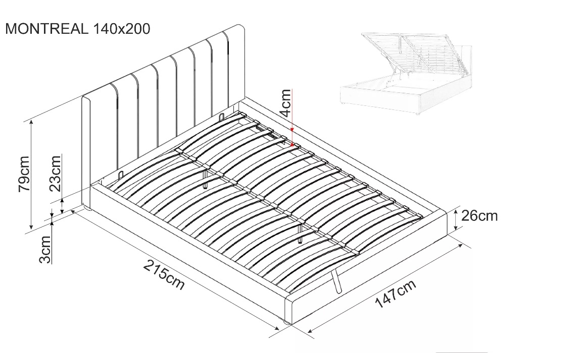 Elegantiška ir funkcionali lova „Montreal 140“ išsiskiria moderniu dizainu ir praktiškumu. Lovos rėmas aptrauktas minkštu gobelenu pilkos arba smėlio spalvos, kuris suteikia jaukumo ir prabangos pojūtį. Patogi ir tvirta konstrukcija užtikrina ilgaamžiškumą. Lovos apačioje įmontuota talpi patalynės dėžė, leidžianti sutvarkyti miegamojo erdvę ir laikyti sezoninius daiktus patogiai. Lova turi patikimas medines groteles, kurios palaiko čiužinį ir užtikrina komfortišką miegą. Matmenys 140×200 cm tinka tiek vienam, tiek dviem žmonėms.