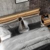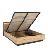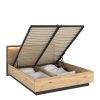 Moderni ir funkcionali Quant 160 QS-02 lova, pagaminta iš lmdp ir hdf medžiagų, su patalynės dėže, grotelėmis ir LED apšvietimu, spalva Artisan ąžuolas su juodos detalėmis, matmenys 160×200 cm.