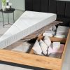 Moderni ir funkcionali lova Urso, kurios matmenys yra 140×200 arba 160×200 cm. Pagaminta iš kokybiškos LMDP plokštės, šis modelis išsiskiria tvirtu karkasu ir praktiška patalynės dėže, kuri užsakoma papildomai. Galvūgalis aptrauktas minkštu gobelenu, kuris suteikia komforto ir estetinį grožį. Lovos grotelės užtikrina patogų ir kokybišką miegą, o patalynės dėžė leidžia laikyti čiužinį ir kitus daiktus tvarkingai ir po ranka. Spalvų pasirinkimas – Kraft auksinis ąžuolas su juodu gobelenu galvūgalyje – puikiai derės tiek klasikinio, tiek modernaus stiliaus miegamajame.