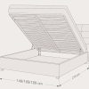 - Faktiniai lovos išmatavimai (su 10 cm kojelėmis): ilgis – 214 cm, plotis – 149/169/189 x 120 cm*;