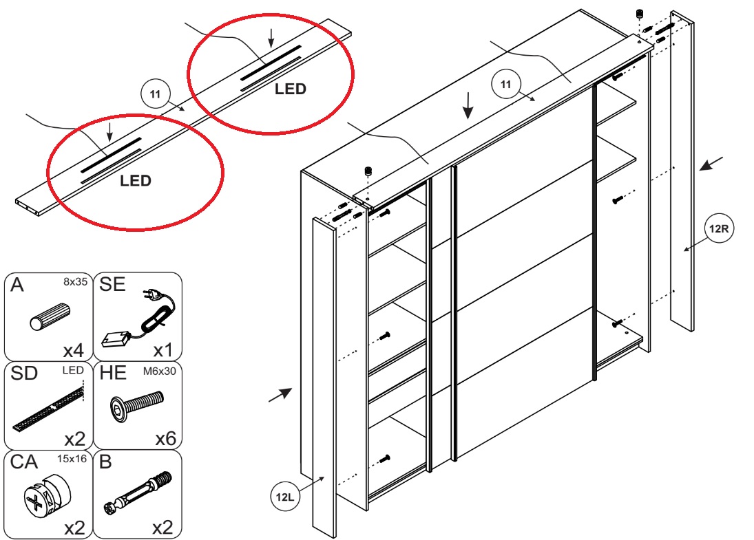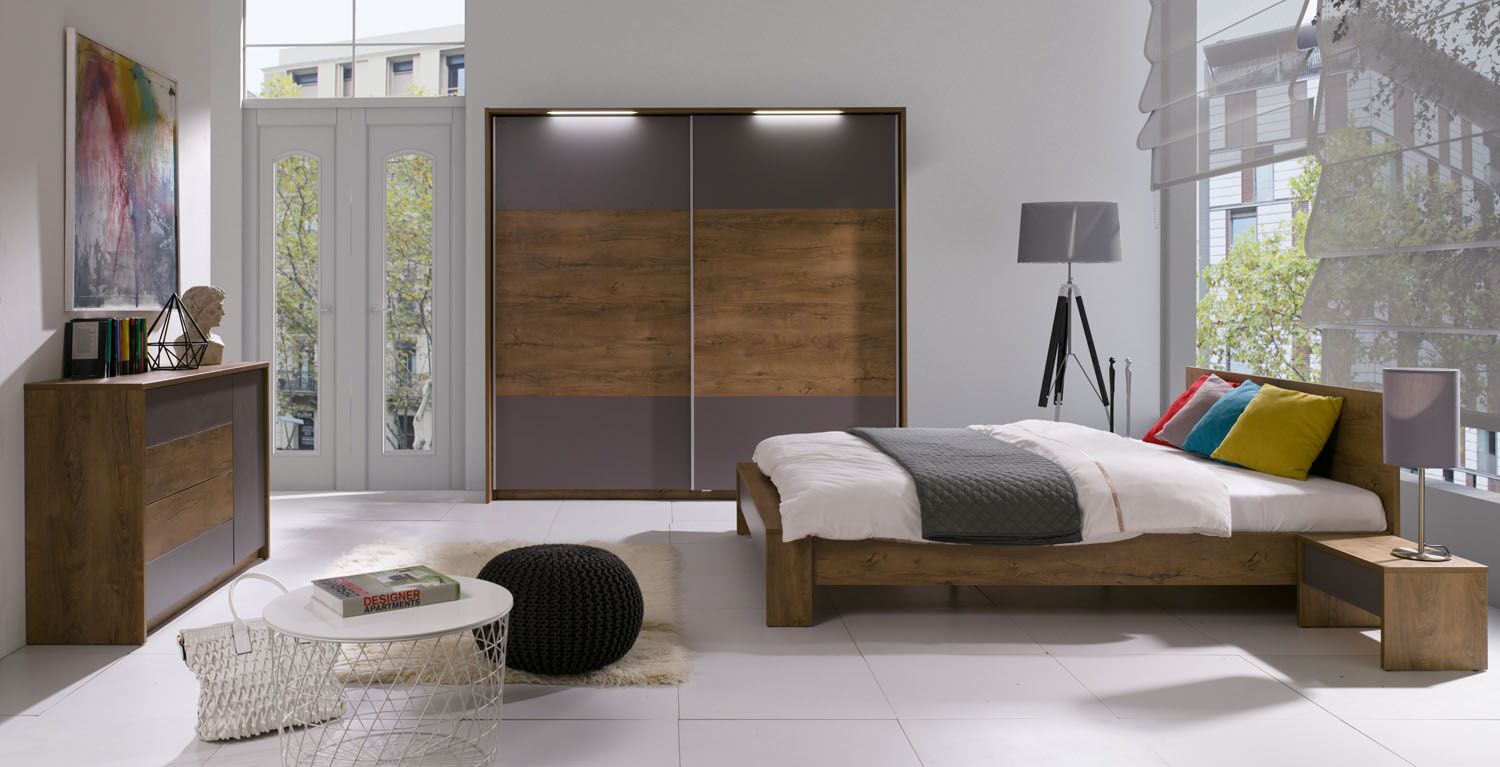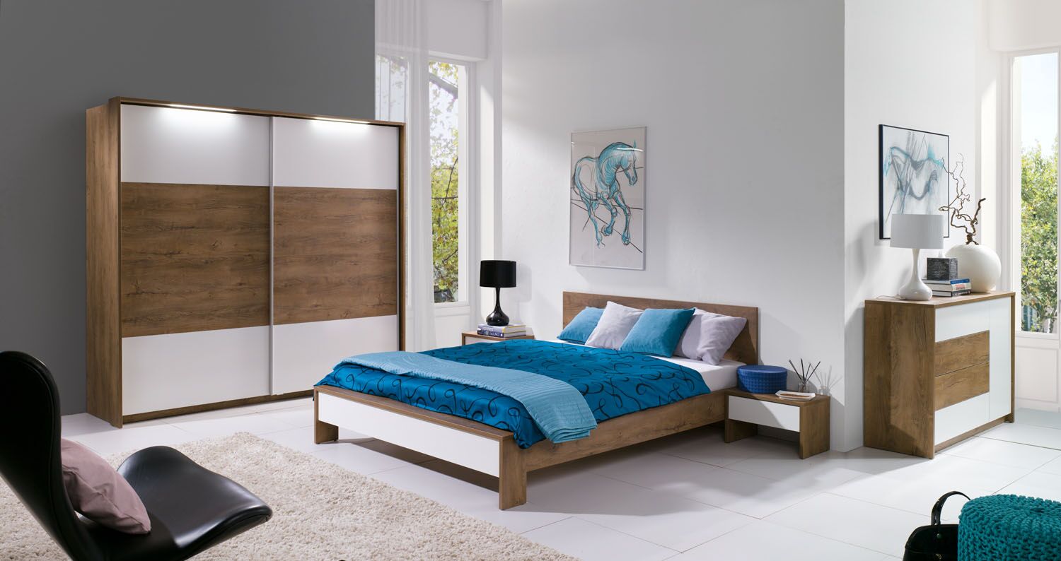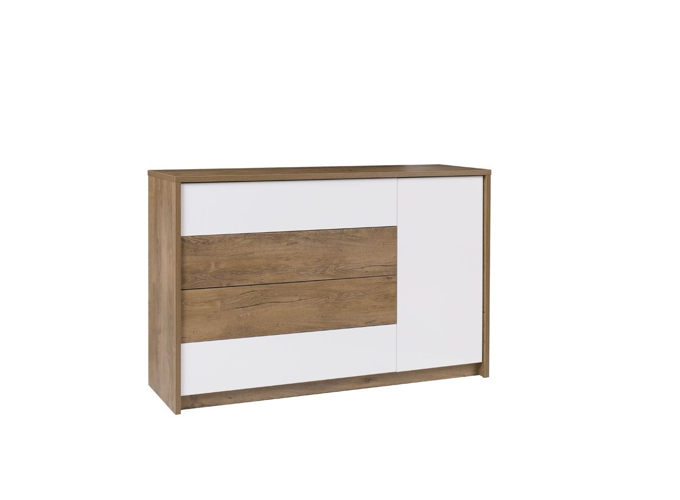 Led apšvietimas spintoje. Komoda ir naktinis staliukas turi stalčių ir durelių atidarymą su atmetimo funkcija „Push Open”