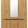 Trijų durų spinta su veidrodžiu – erdvi ir praktiška, su stumdomų durų sistema, leidžiančia taupyti vietą kambaryje. Jos viduje: talpios lentynos, drabužių kabinimo strypai ir nišos – suprojektuota patogiam rūbų bei aksesuarų laikymui. Komoda – solidi, dviejų stalčių ir dviejų durų konstrukcija, idealiai tinkanti daiktų organizavimui.