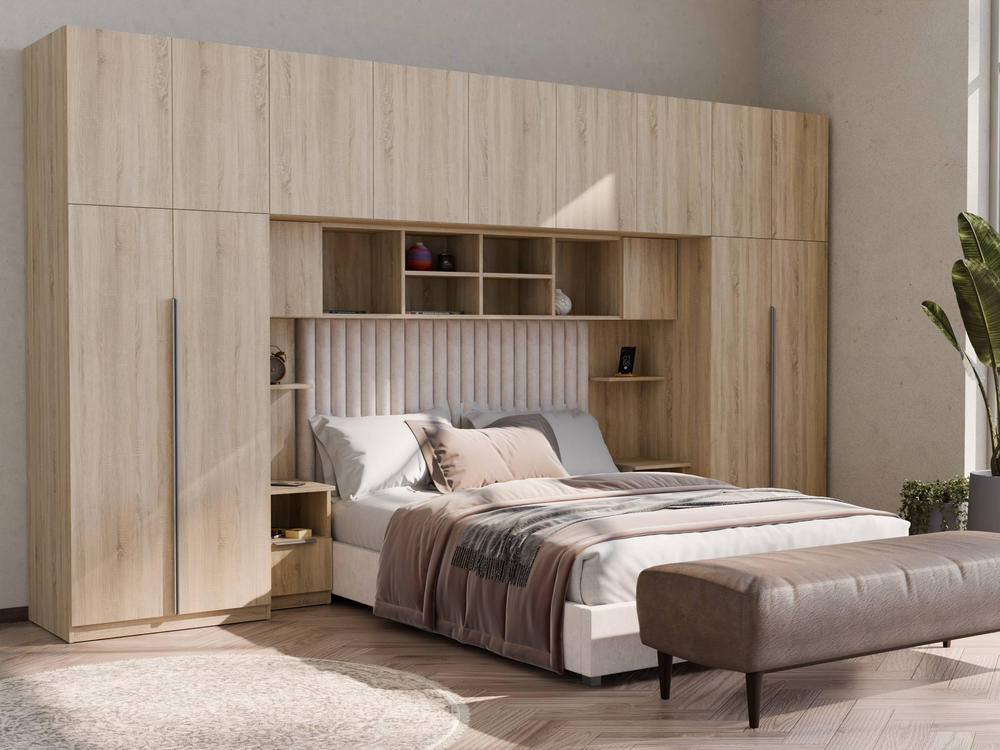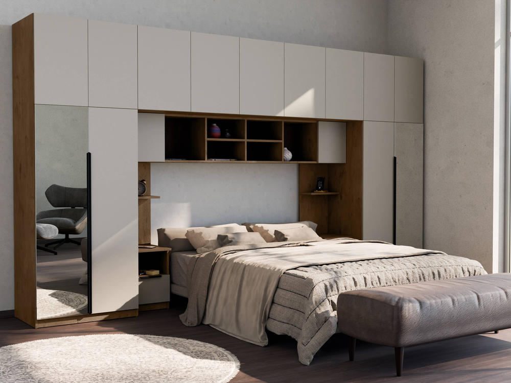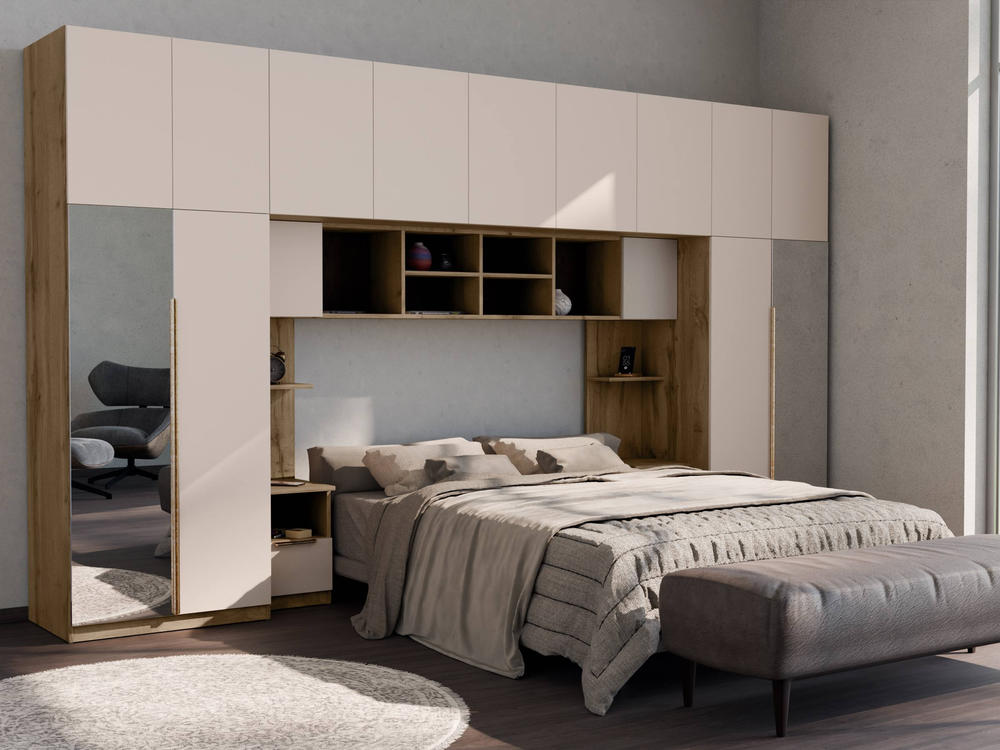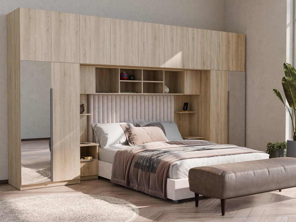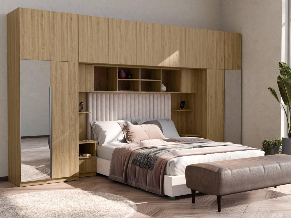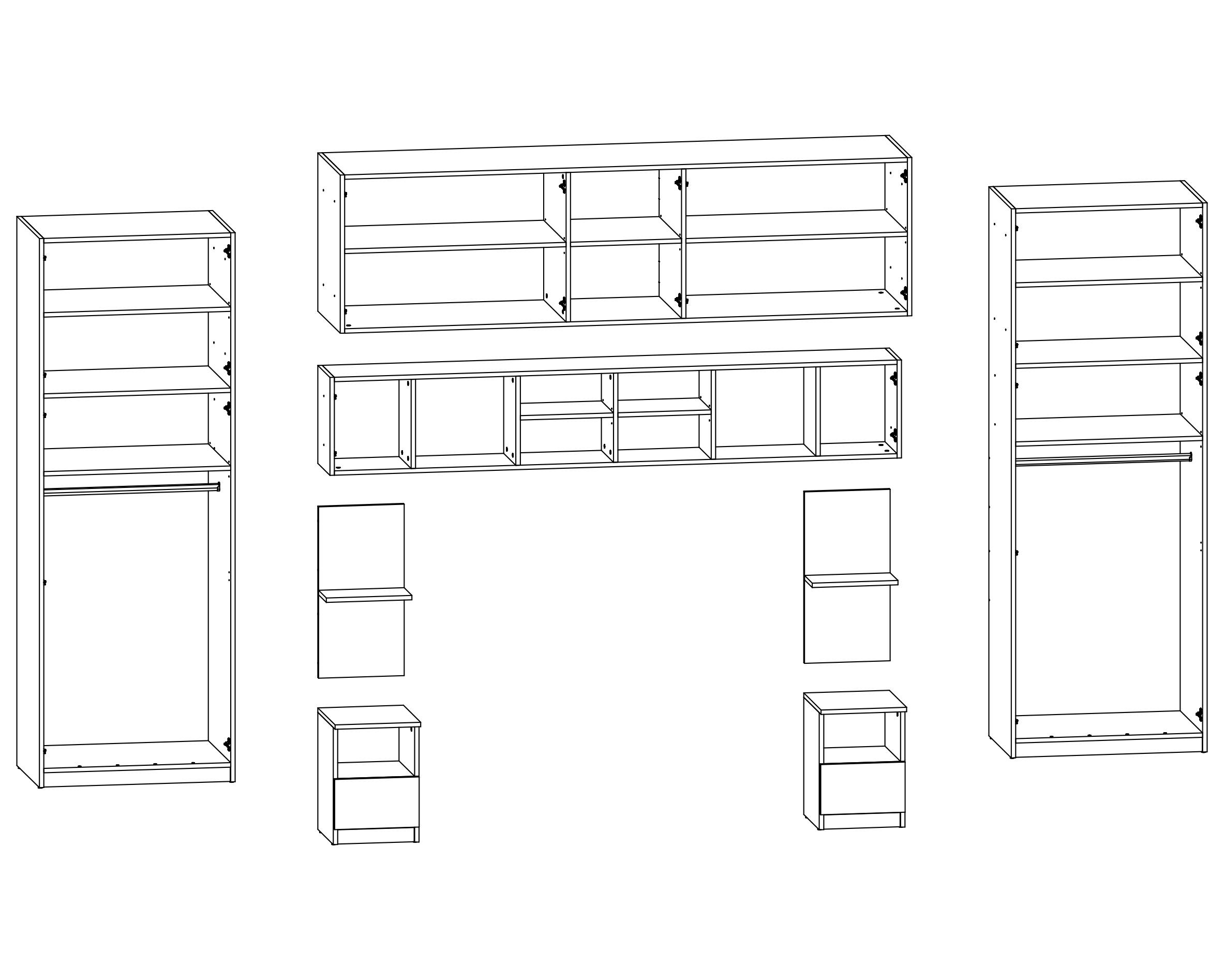 Modulinė sienelė Jula yra sisteminis korpusinių baldų sprendimas. Ji skirta suformuoti vientisą sienos kompoziciją miegamajame ar svetainėje. Šis baldas efektyviai sprendžia riboto ploto problemą. Erdvi 1736 mm pločio centrinė niša leidžia integruoti dvigulę lovą. Taip pat joje gali stovėti platus televizoriaus staliukas. Tai padeda maksimaliai išnaudoti kambario aukštį ir plotį. Pirkėjai gali pasirinkti modelį su veidrodžiais. Jie montuojami ant vienos arba abiejų šoninių spintų durų. Atkreipiame dėmesį, kad lova ar TV staliukas į nurodytą kainą neįtraukti.