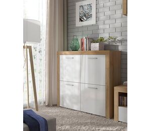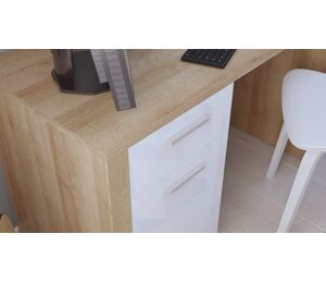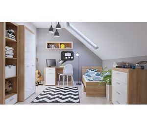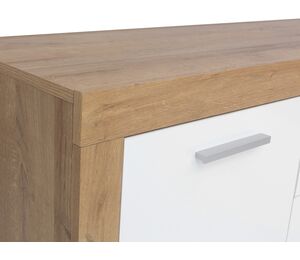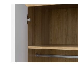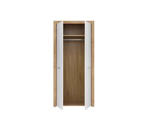 Miegamojo spinta Balder SZF2D – praktiškas pasirinkimas ieškantiems kompaktiško, bet talpaus baldų sprendimo. Spinta turi dvi varstomas duris, už kurių įrengtas drabužių kabinimo skersinis ir viršutinė lentyna – idealu tiek kasdieniams drabužiams, tiek sezoniniams daiktams. Šviesi balta blizgi spalva derinama su šiltu „Riviera“ ąžuolo atspalviu, kuris suteikia interjerui jaukumo ir vizualinio lengvumo.