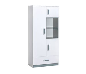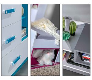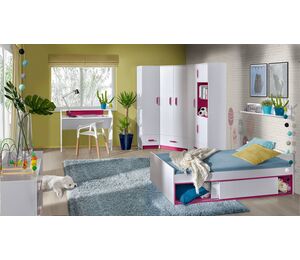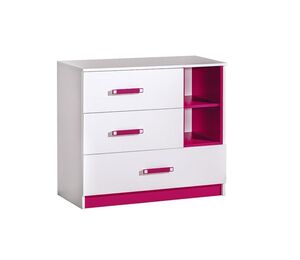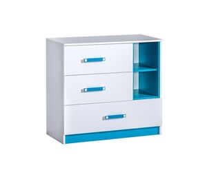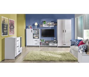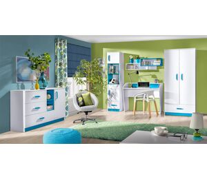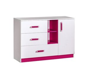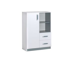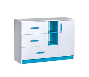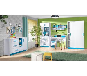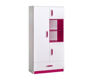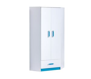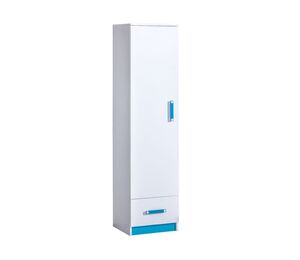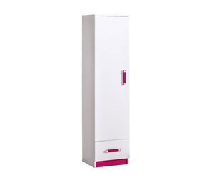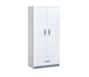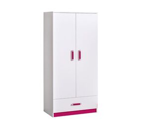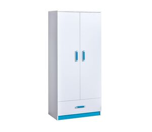 Ši spinta yra baltos spalvos su galimybe rinktis pilkos, rožinės arba turkio spalvos dekoratyvines detales – todėl puikiai derės tiek berniuko, tiek mergaitės kambaryje. Varstomos durys užtikrina patogų priėjimą prie daiktų, o viduje rasite lentynėles, kurios leidžia tvarkingai laikyti drabužius, žaislus ar kitus reikmenis. Apatinėje dalyje įrengtas talpus stalčius, kuris suteikia papildomos vietos saugojimui.