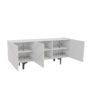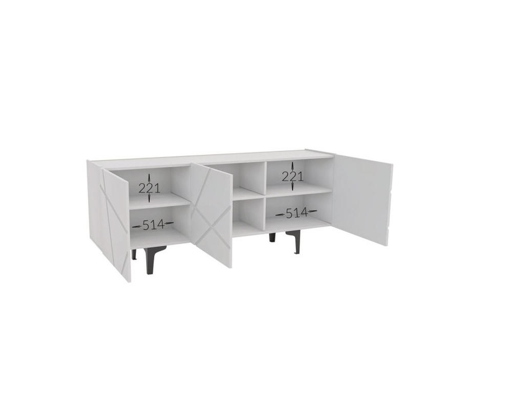 Staliuko matmenys: plotis 1600 mm, aukštis 650 mm, gylis 365 mm. Viduje esančios lentynos leidžia patogiai laikyti įvairius įrenginius, o trijų durų konstrukcija padeda išlaikyti tvarką ir paslėpti daiktus nuo matomo vaizdo.