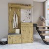 „Armario“ prieškambario komplektas, pagamintas iš artisan ąžuolo imitacijos, turi veidrodį ir talpią spintelę. Funkcionalus ir stilingas sprendimas jūsų prieškambariui.