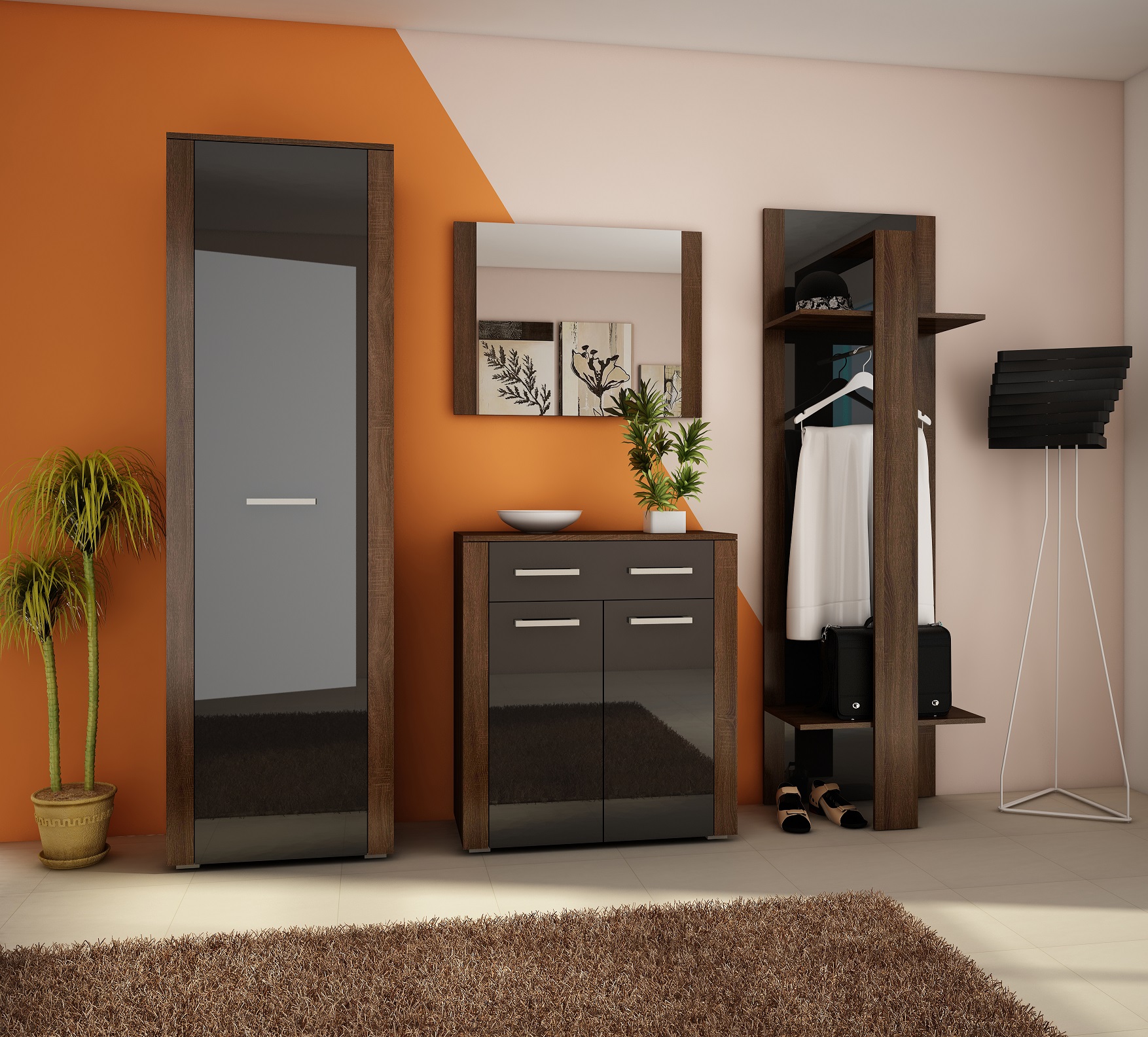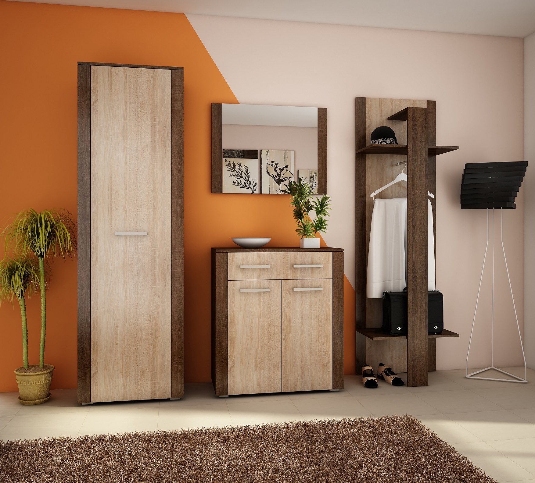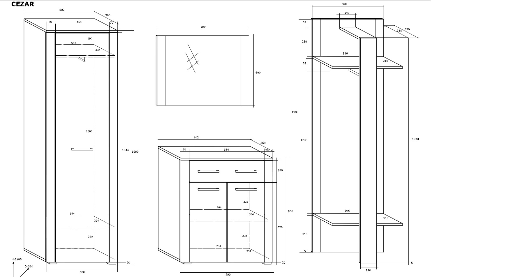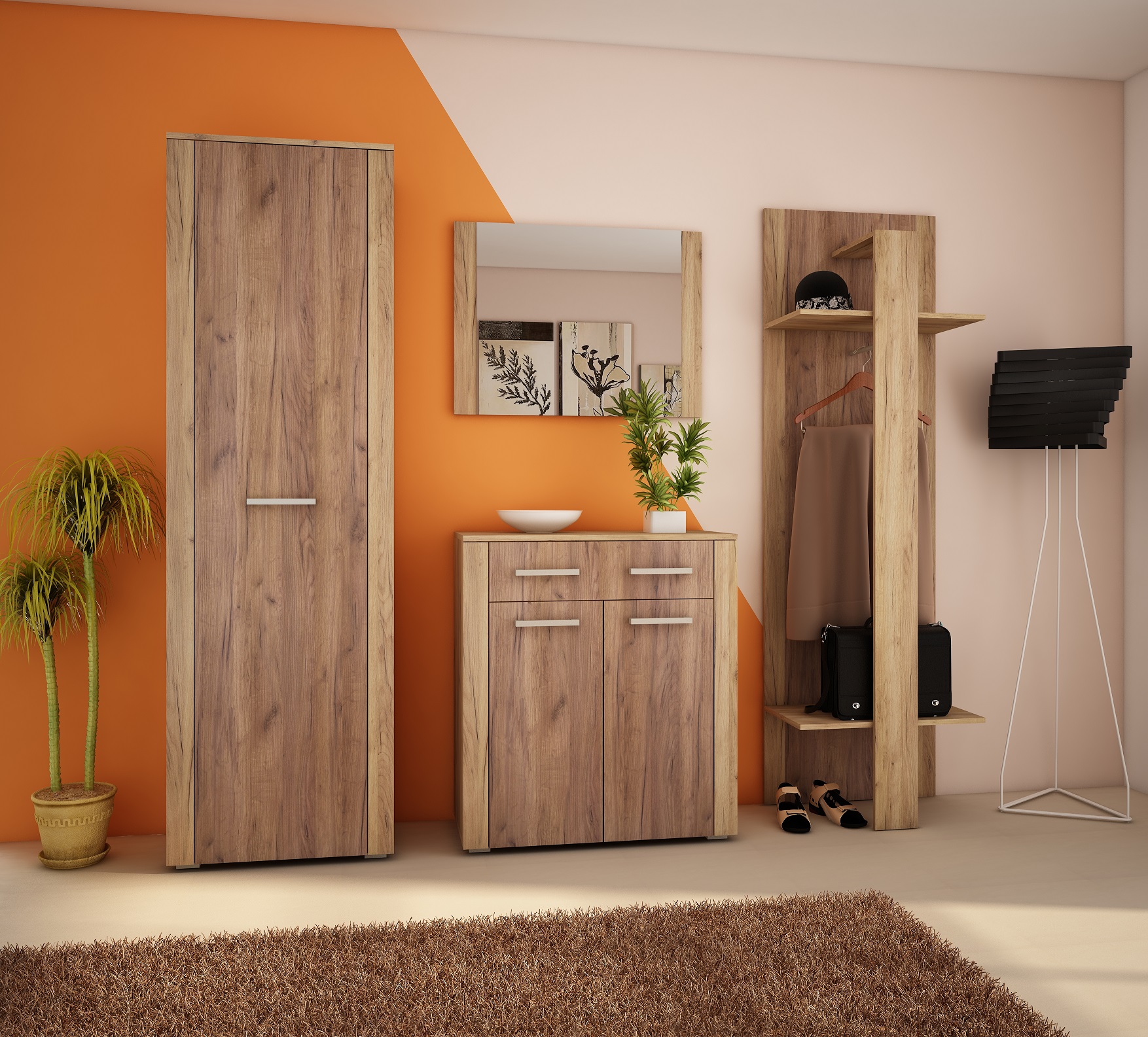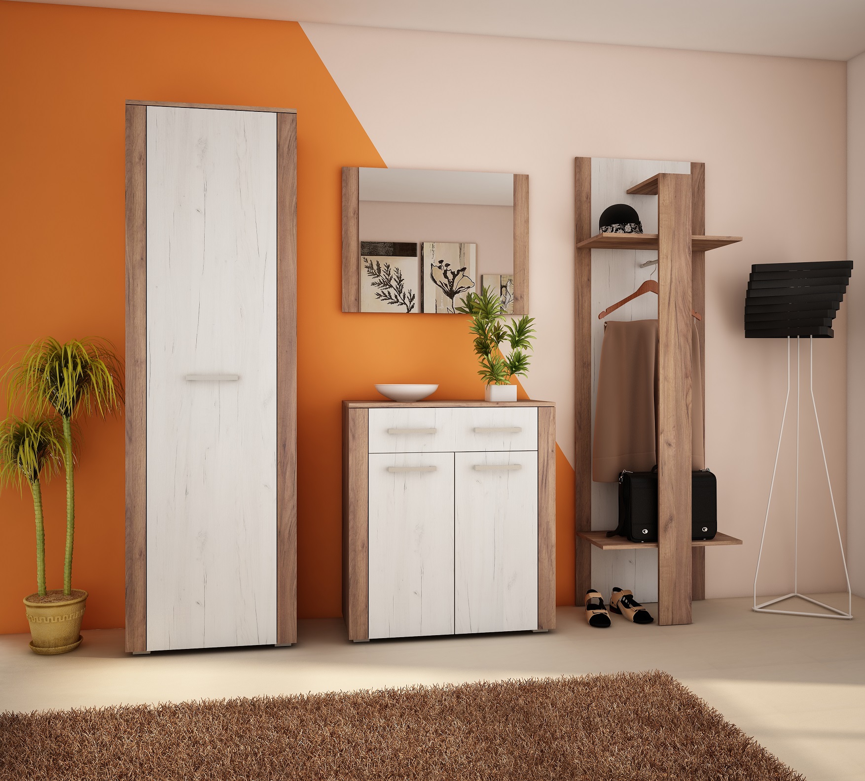 Prieškambario baldų komplektas Cezar – stilingas ir funkcionalus sprendimas Jūsų namams. Komplekte yra spinta, komoda su veidrodžiu ir drabužių kabyklos zona. Galimos kelių spalvų pasirinkimo galimybės.