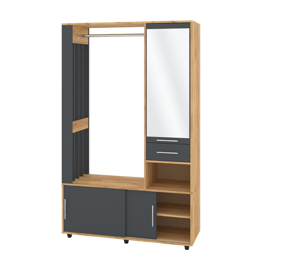 Hermes prieškambario komplektas iš Ukrainos, su veidrodžiu ir stilingu Tacho bei antracito spalvų deriniu. Kompaktiškas ir funkcionalus sprendimas Jūsų prieškambariui.