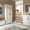 Erdvus ir modernus modulinis prieskambario komplektas Loksa, 271 cm pločio, derinantis Andersen pušies ir grandson ąžuolo spalvas. Puikus sprendimas norintiems funkcionalumo ir stiliaus savo namų įėjime.