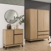 Modernus prieškambario baldų komplektas „Tenese“ su spinta, kabykla ir patogiomis lentynomis. Pagamintas iš LMDP, spalva sonomos ąžuolas ir balta.