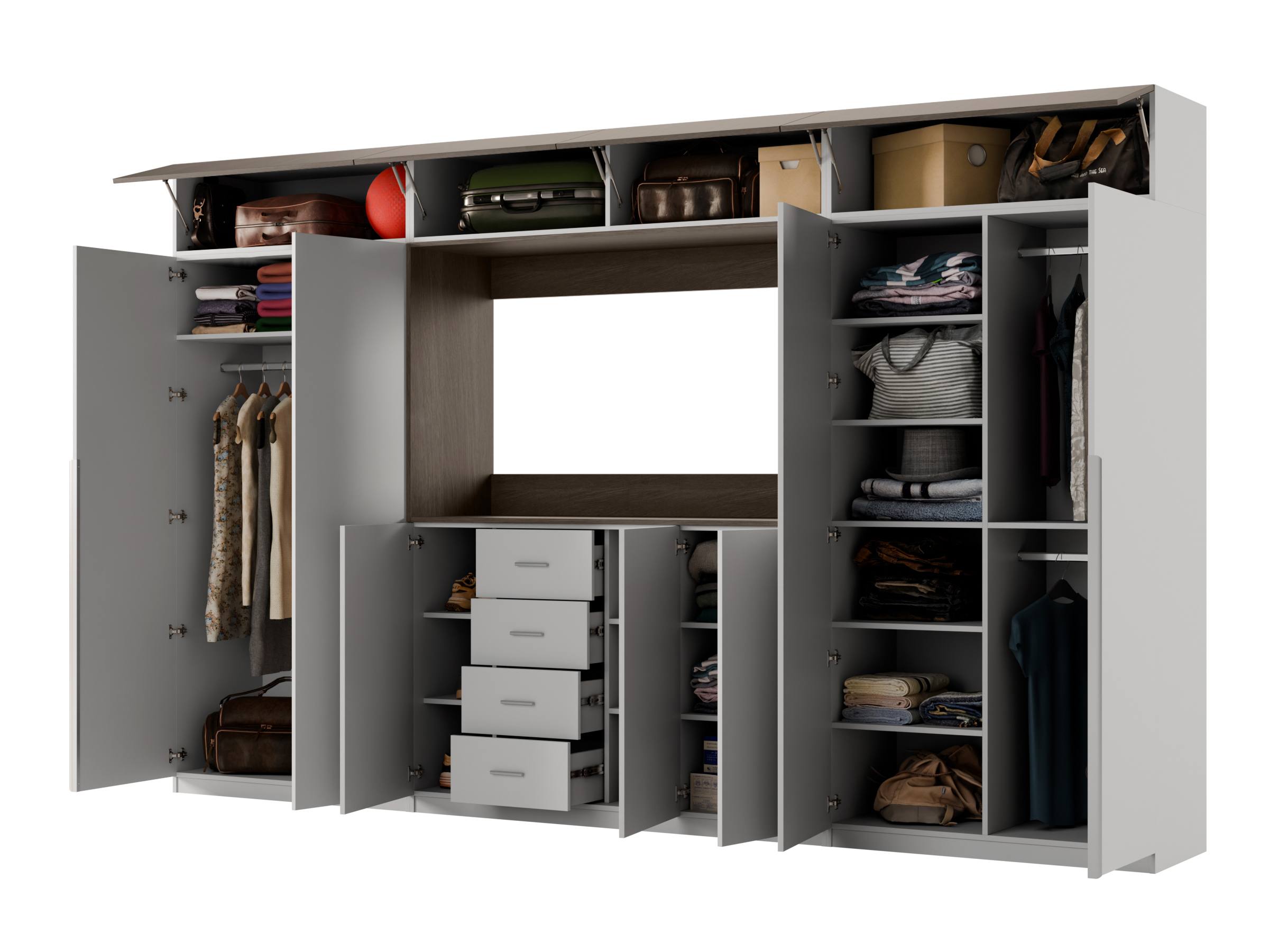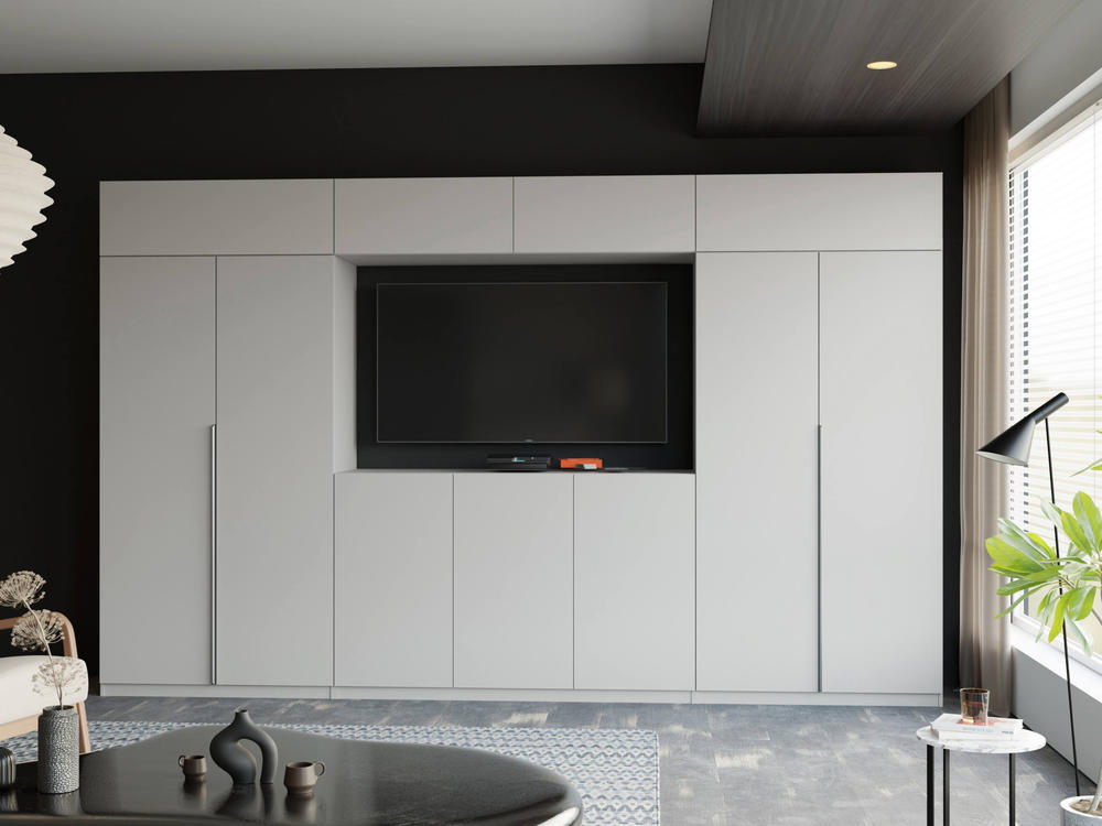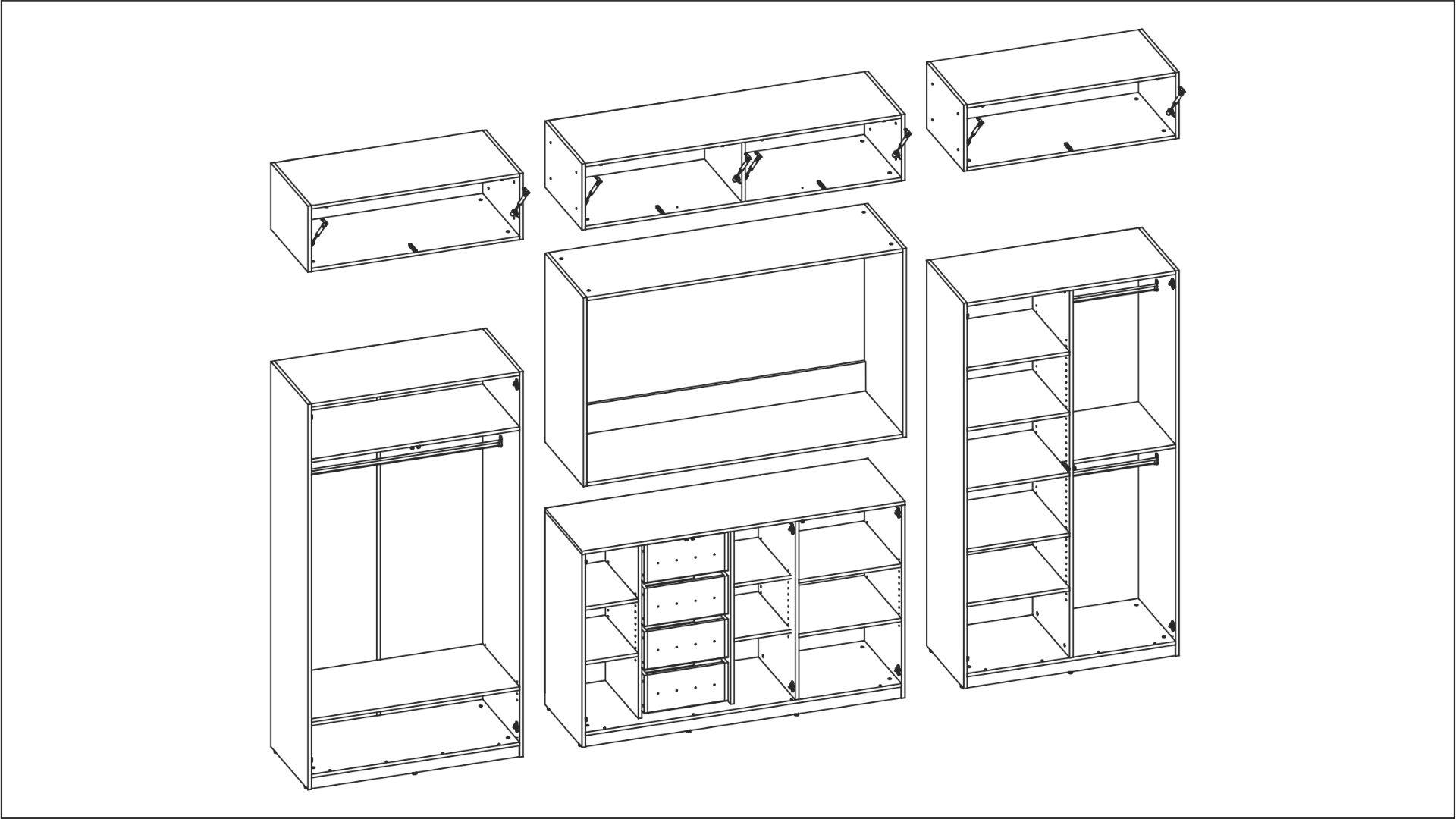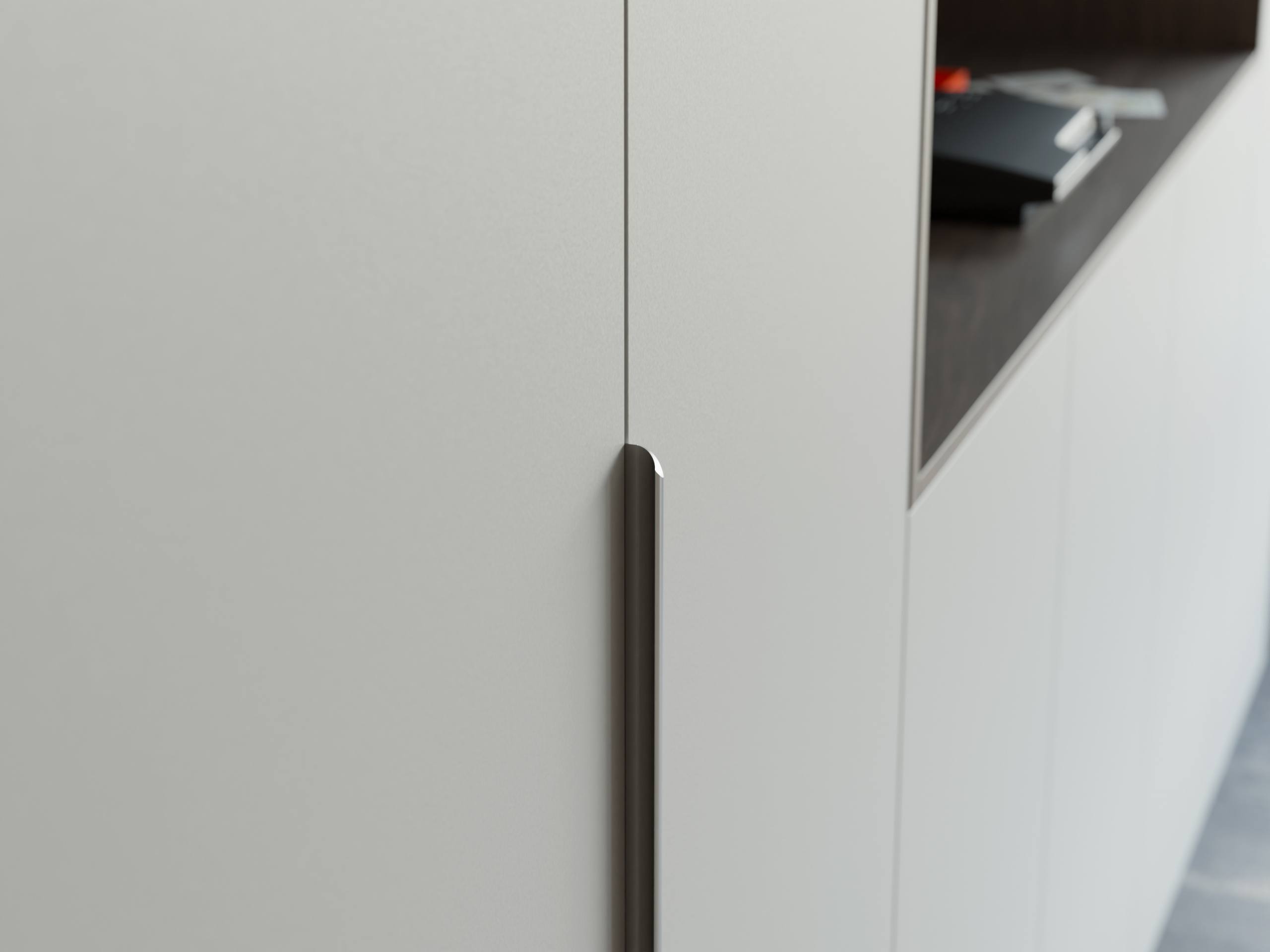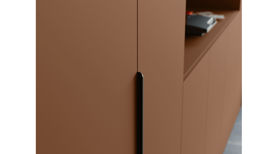 Vartotojų patogumui įdiegta Push to Open durelių atidarymo sistema. Papildomo akcento suteikia net 120 cm ilgio metalinės rankenėlės. Galimas platus spalvų pasirinkimas pagal jūsų individualų skonį. Bendri sistemos matmenys: 3850 mm plotis, 2400 mm aukštis ir 540 mm gylis. Tvirta konstrukcija užtikrina baldo ilgaamžiškumą ir patikimą eksploataciją.