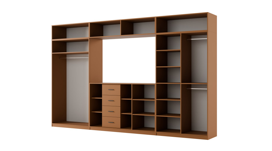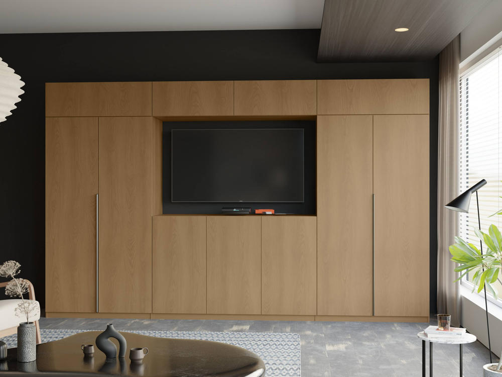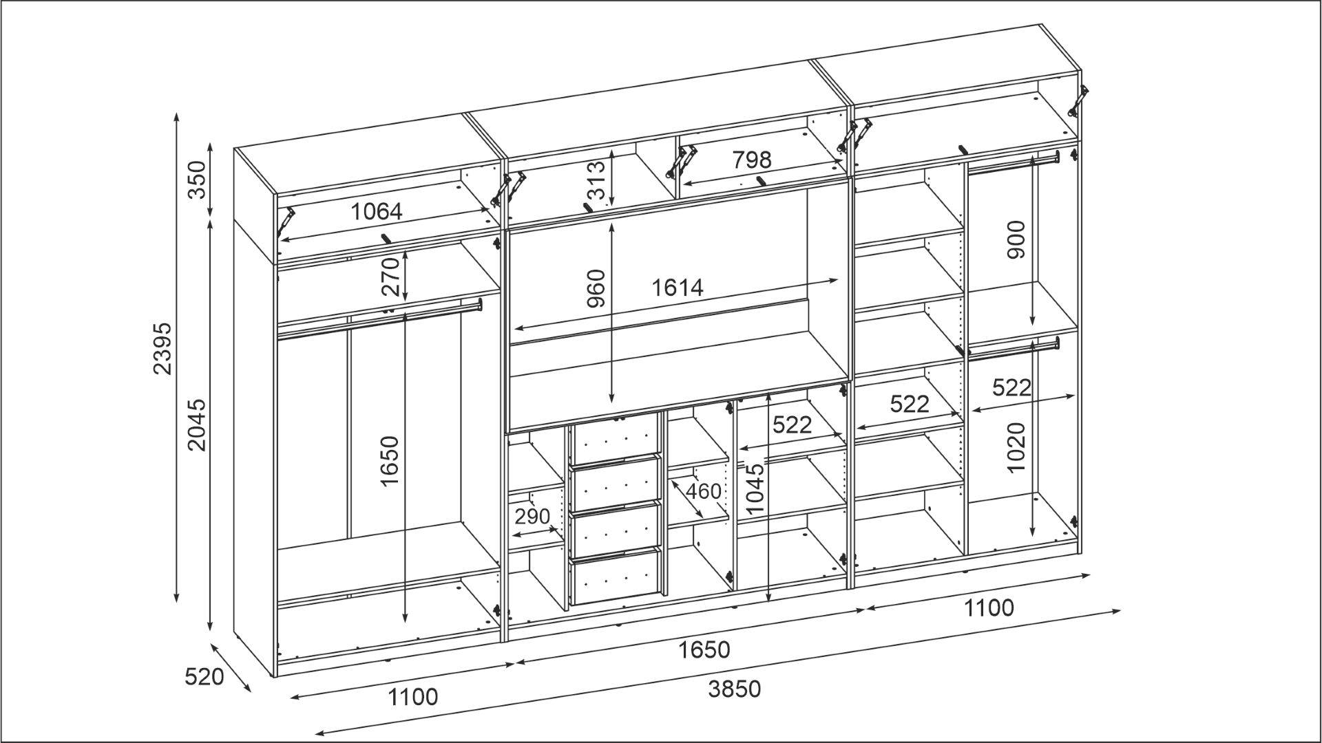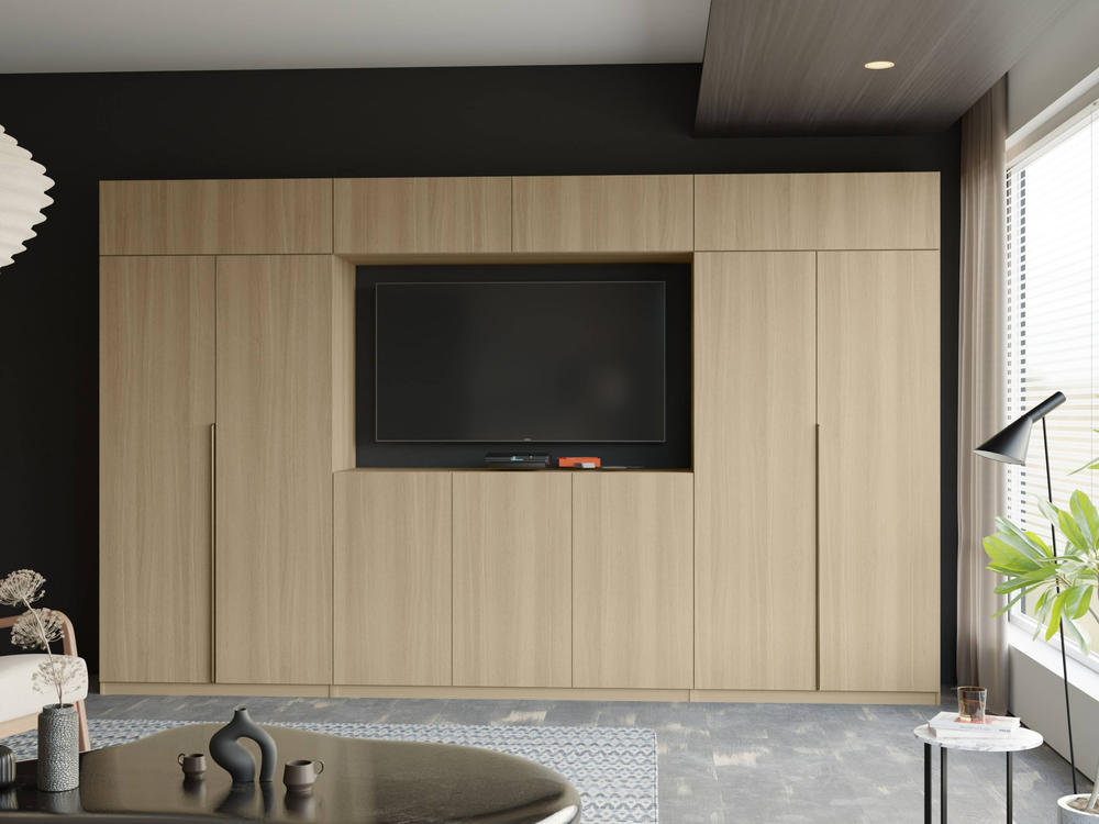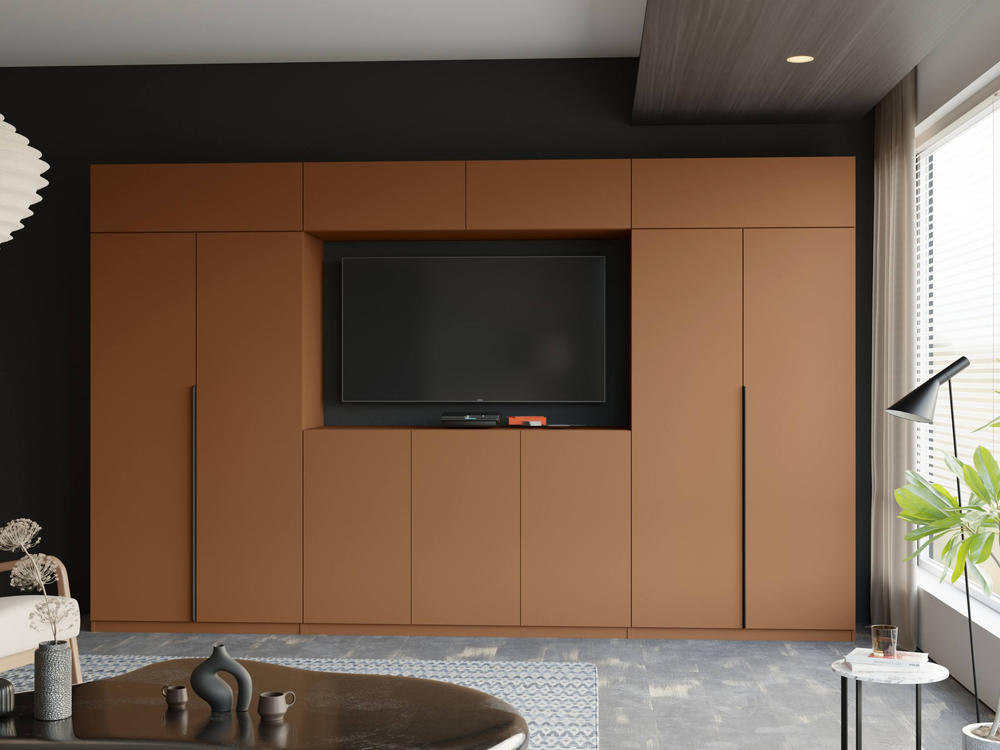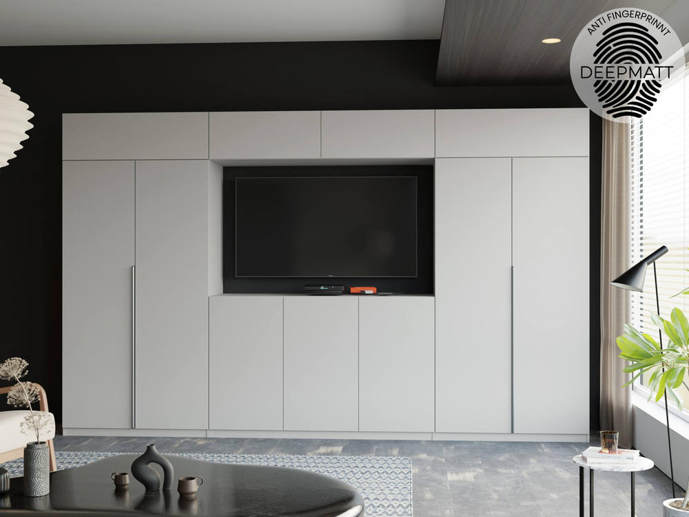 Vartotojų patogumui įdiegta Push to Open durelių atidarymo sistema. Papildomo akcento suteikia net 120 cm ilgio metalinės rankenėlės. Galimas platus spalvų pasirinkimas pagal jūsų individualų skonį. Bendri sistemos matmenys: 3850 mm plotis, 2400 mm aukštis ir 540 mm gylis. Tvirta konstrukcija užtikrina baldo ilgaamžiškumą ir patikimą eksploataciją.