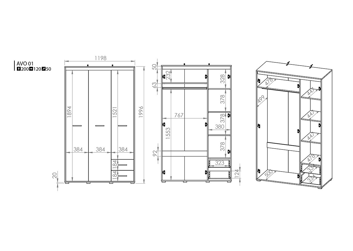 Komplektaciją sudaro (aukštis/plotis/gylis):