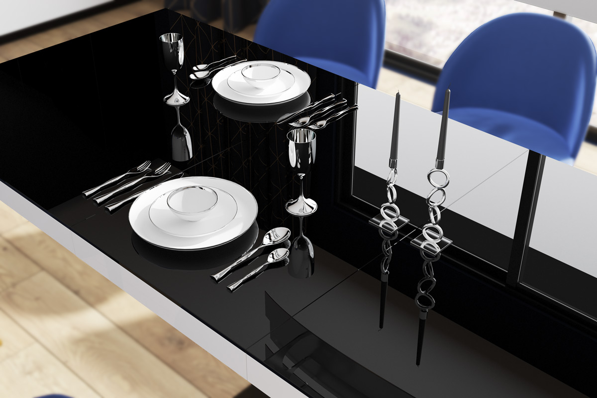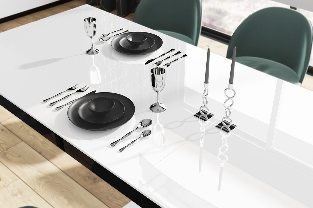 Stalai gaminami iš „Super blizgios” plokštės, kurios „Hubertus“ yra vienintelis gamintojas ir platintojas. Ši plokšė išsiskiria aukščiausia kokybe ir ilgaamžiškumu. Be to, stalai padengti akrilu su didesniu atsparumu įbrėžimams ir UV spinduliams. Dėl to galite būti tikri, kad perkame aukščiausios kokybės produktą, 100% iš Lenkijos. Viso gamybos proceso metu blizgūs baldai yra apsaugoti gamykloje uždėta apsaugine folija, kuri pašalinama tik surinkus stalą.