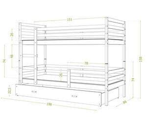 Pritaikyta čiužiniui: 800 mm x 1900 mm