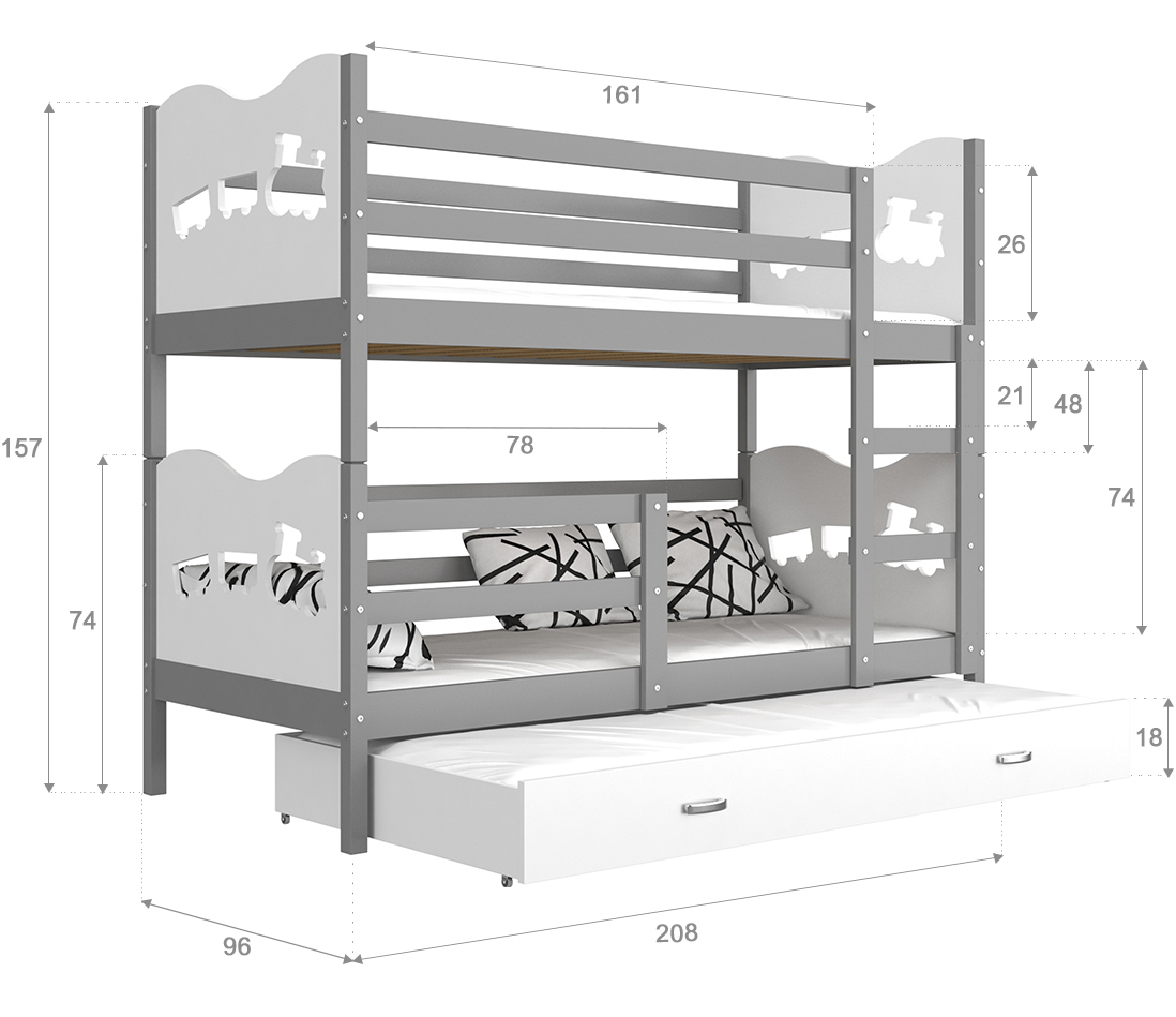 | Lovos tipas | Dviaukštė su ištraukiama papildoma lova |