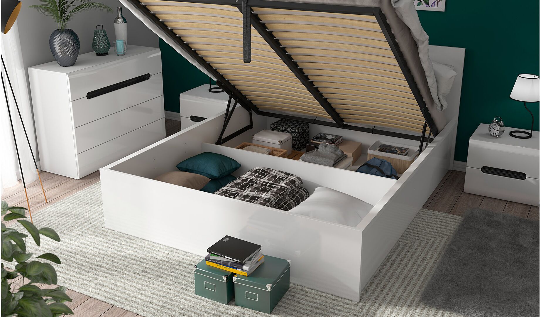 Lova aprūpinta patogia ir erdvia patalynės dėže, kurioje galima laikyti sezoninius patalynės reikmenis ar kitus namų daiktus. Patalynės dėžės dangtis lengvai pakeliamas, todėl kasdienė prieiga yra labai paprasta. Lovos pagrindą sudaro patvarios ir kokybiškos grotelės, kurios užtikrina tinkamą čiužinio oro cirkuliaciją ir komfortą miegant.