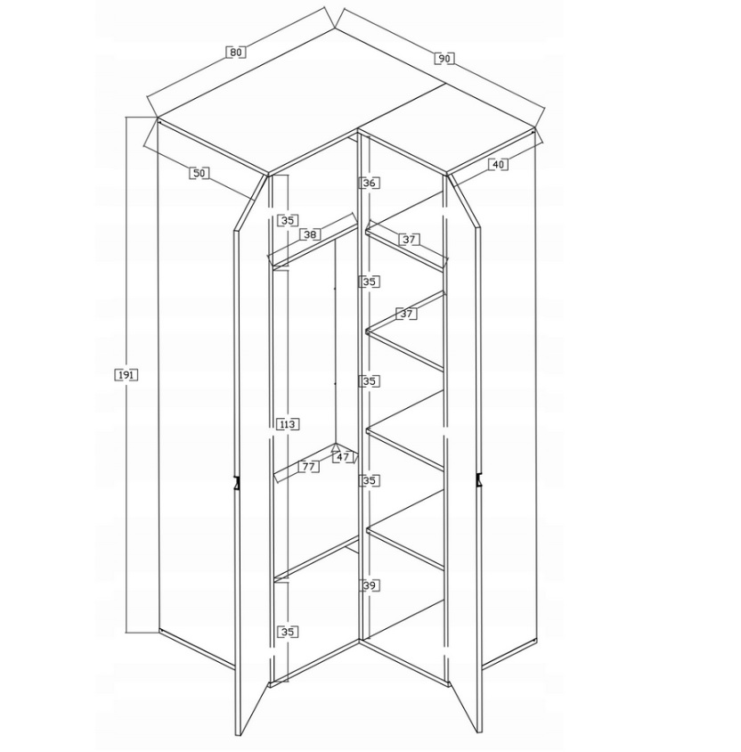 Kampinė spinta Index 03 – 1910/800/900 mm;