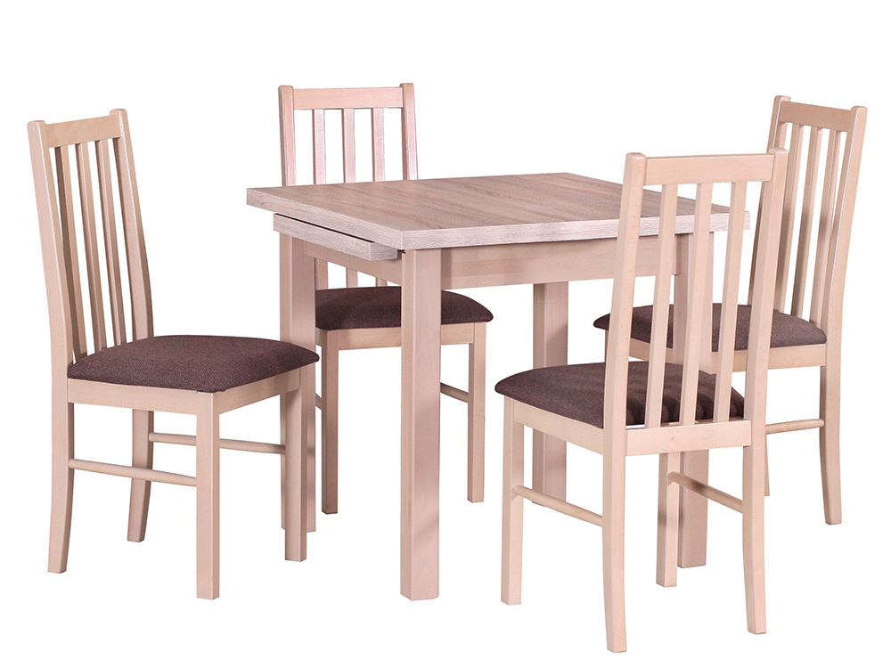 Kėdes ir stalą galima rinktis iš skirtingų medienos ir gobelenų spalvų.