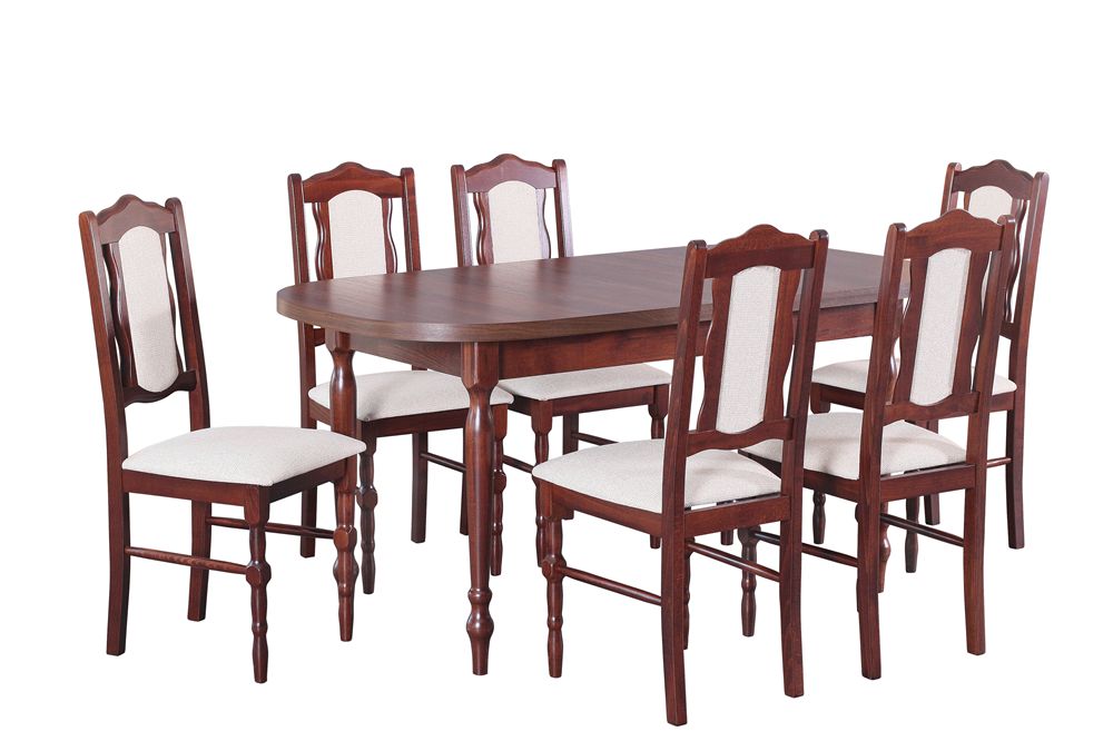 Kėdes ir stalą galima rinktis iš skirtingų medienos ir gobelenų spalvų.