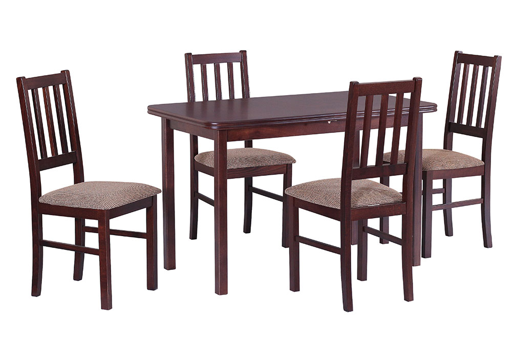 Kėdes ir stalą galima rinktis iš skirtingų medienos ir gobelenų spalvų.