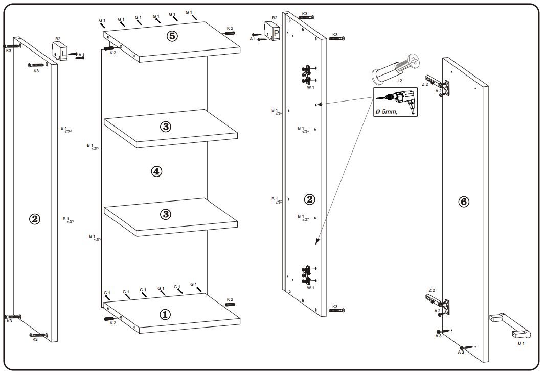 Spintelių korpusas ir durelės gaminamos iš LMDP, plokštės storis 16 mm.