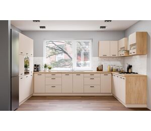 Kiekviena spintelė parduodama atskirai, o tai leidžia susikurti tiksliai tokią virtuvę, kokios reikia. Galima pasirinkti iš kelių spalvinių derinių, kurie keičiasi priklausomai nuo konkretaus modelio – nuo šviesaus ąžuolo iki matinių pilkų ar smėlio atspalvių.